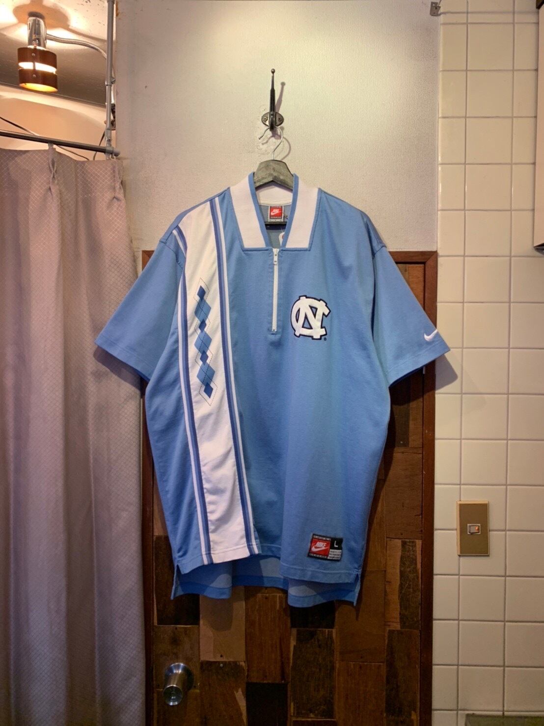 “NIKE” 90's light blue×white cotton/poly wappen S/S half-zip shirt