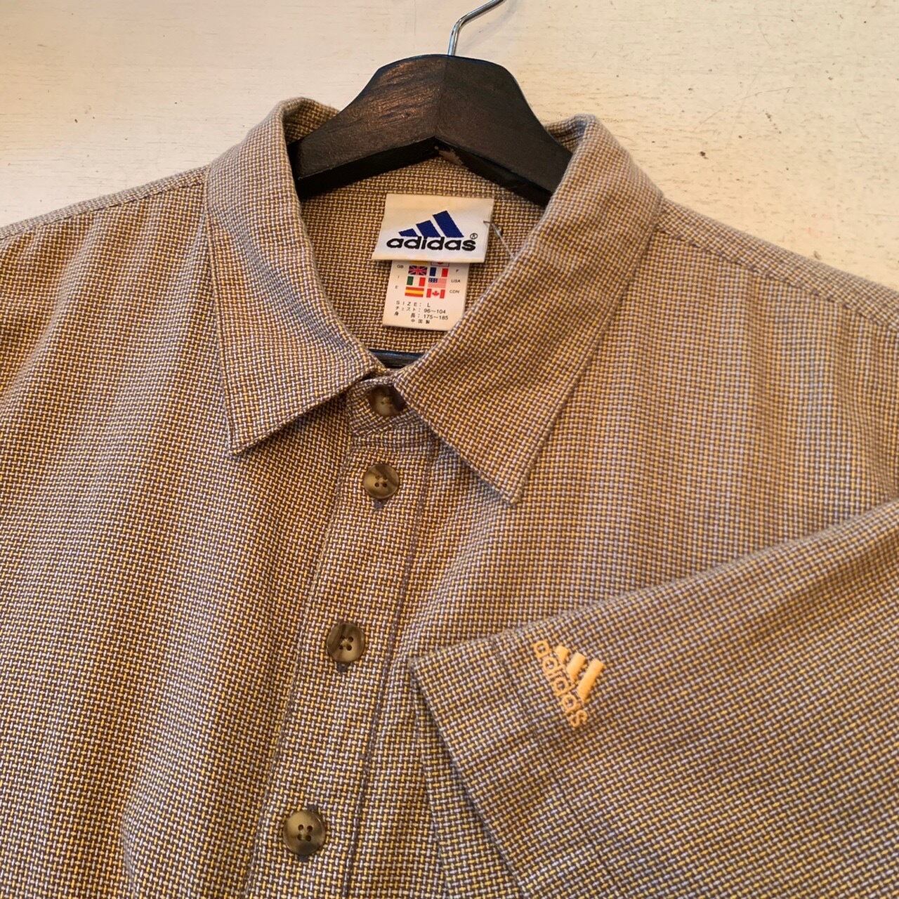 “adidas” 90's brown base cotton repeating pattern S/S polo shirt