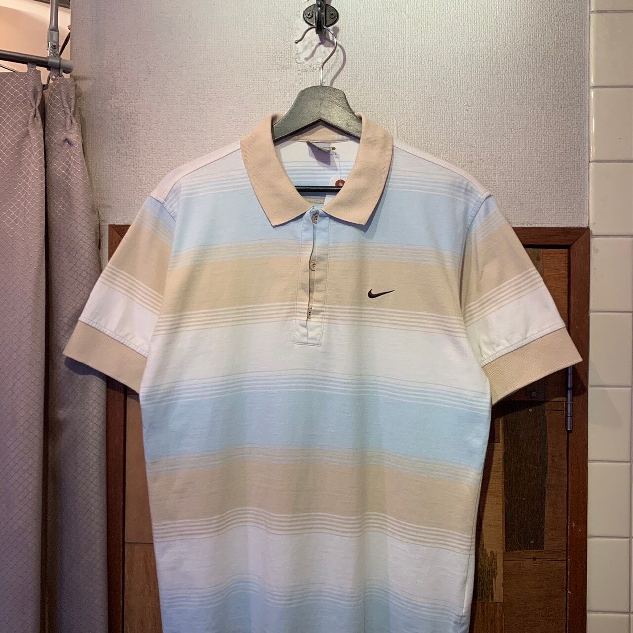 “NIKE” 00's~ light blue×light beige×white cotton switch color S/S polo shirt