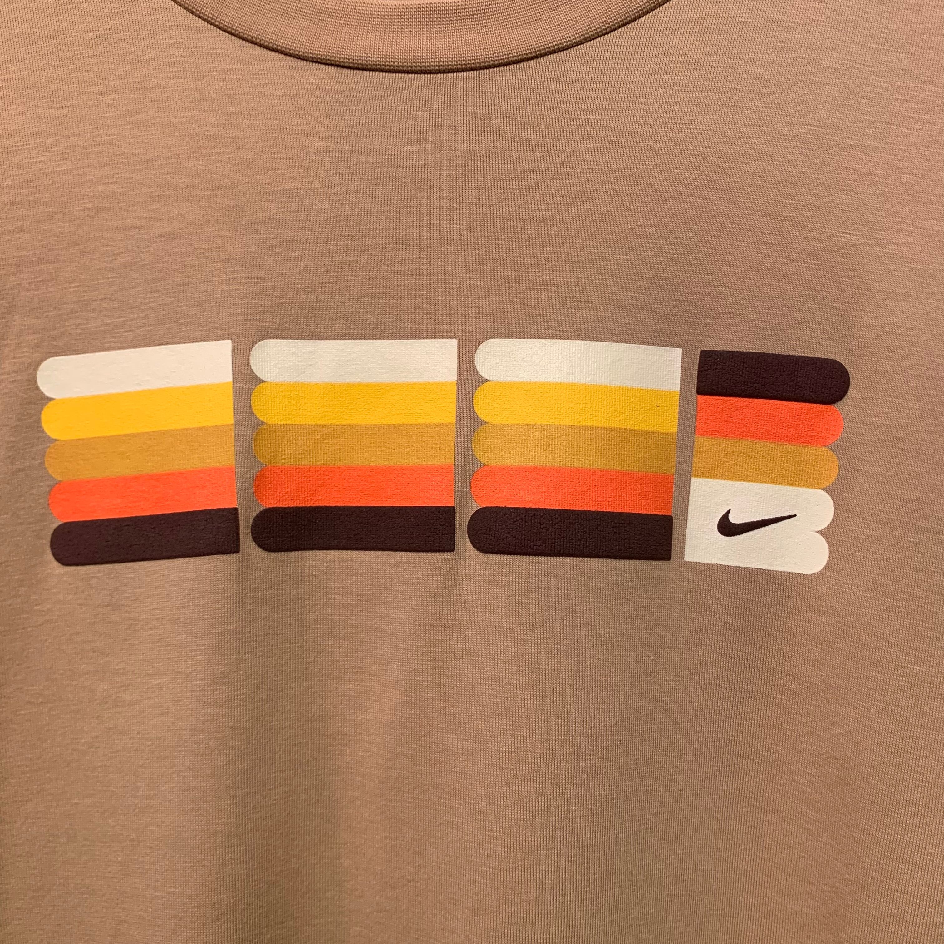 “NIKE” 00’s light brown cotton/poly printed S/S T-shirt