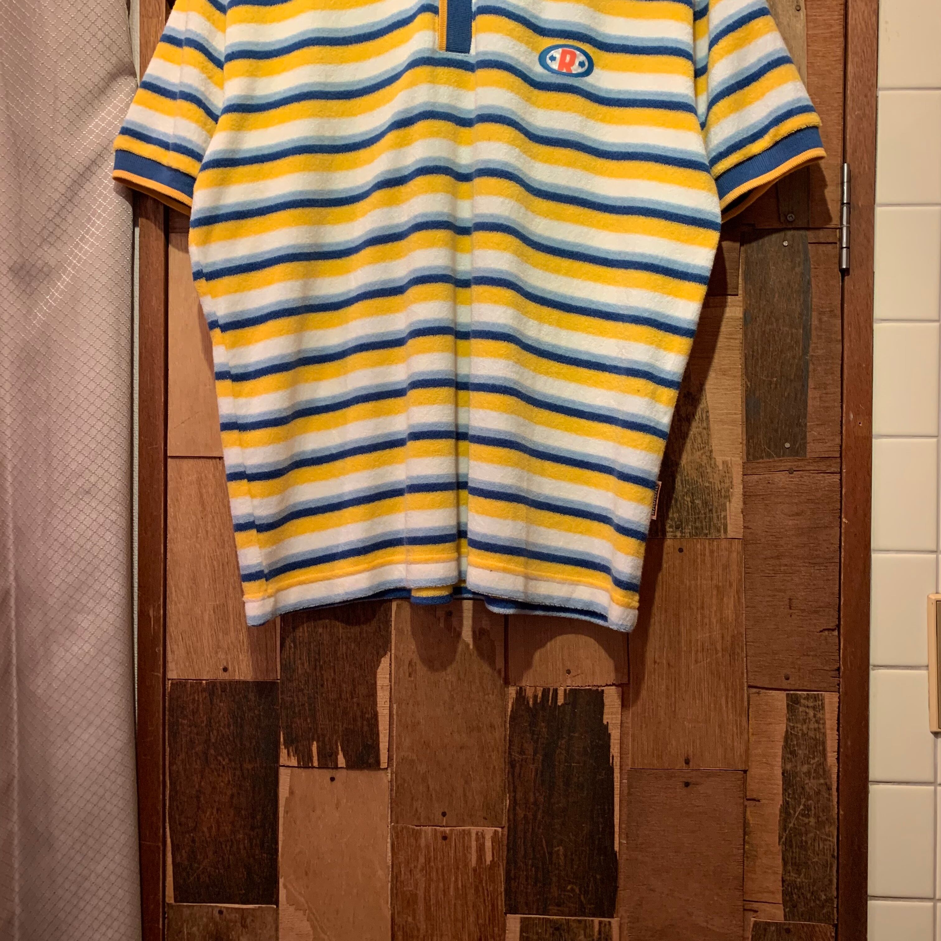 “brand unknown” multi color cotton/poly border pattern S/S pile polo