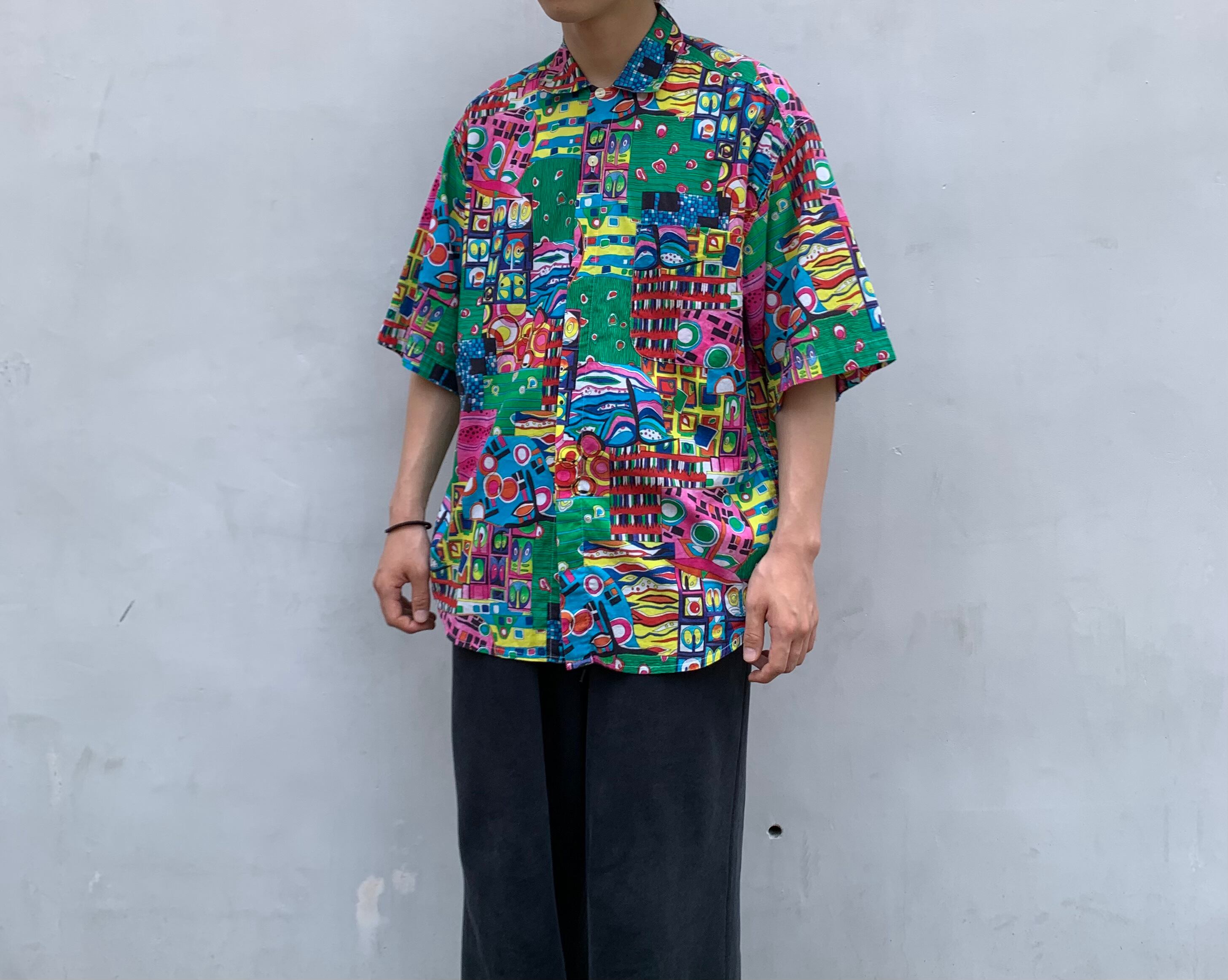 “EXTERIEUR HOMME” multi color art pattern S/S shirt