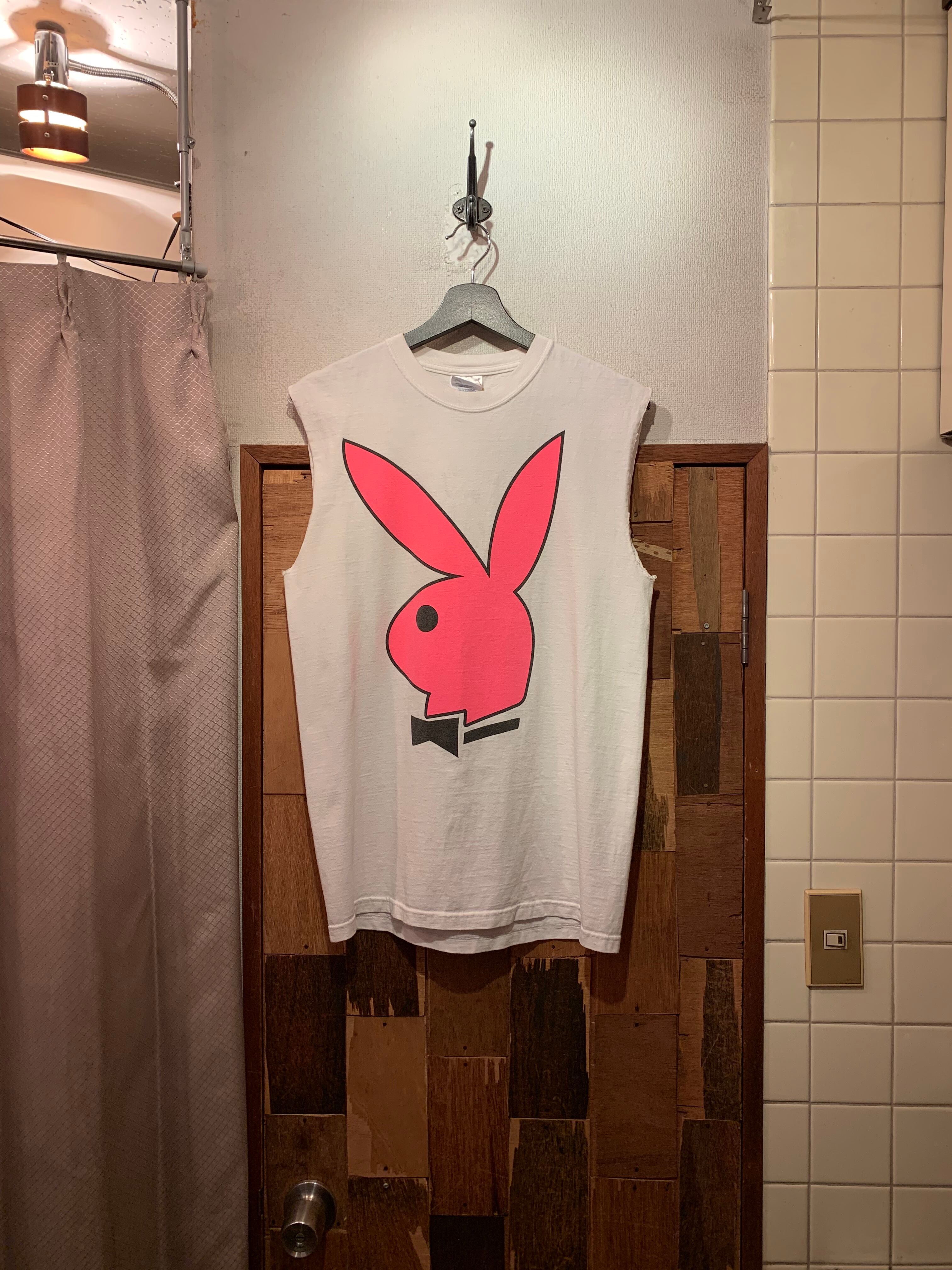 “PORT and COMPANY” 「PLAY BOY」 white×pink cotton printed N/S T-shirt