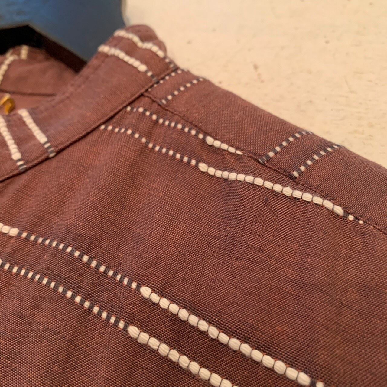 “JEFF SAYRE” brown×white cotton/rayon repeating pattern S/S band-collar shirt