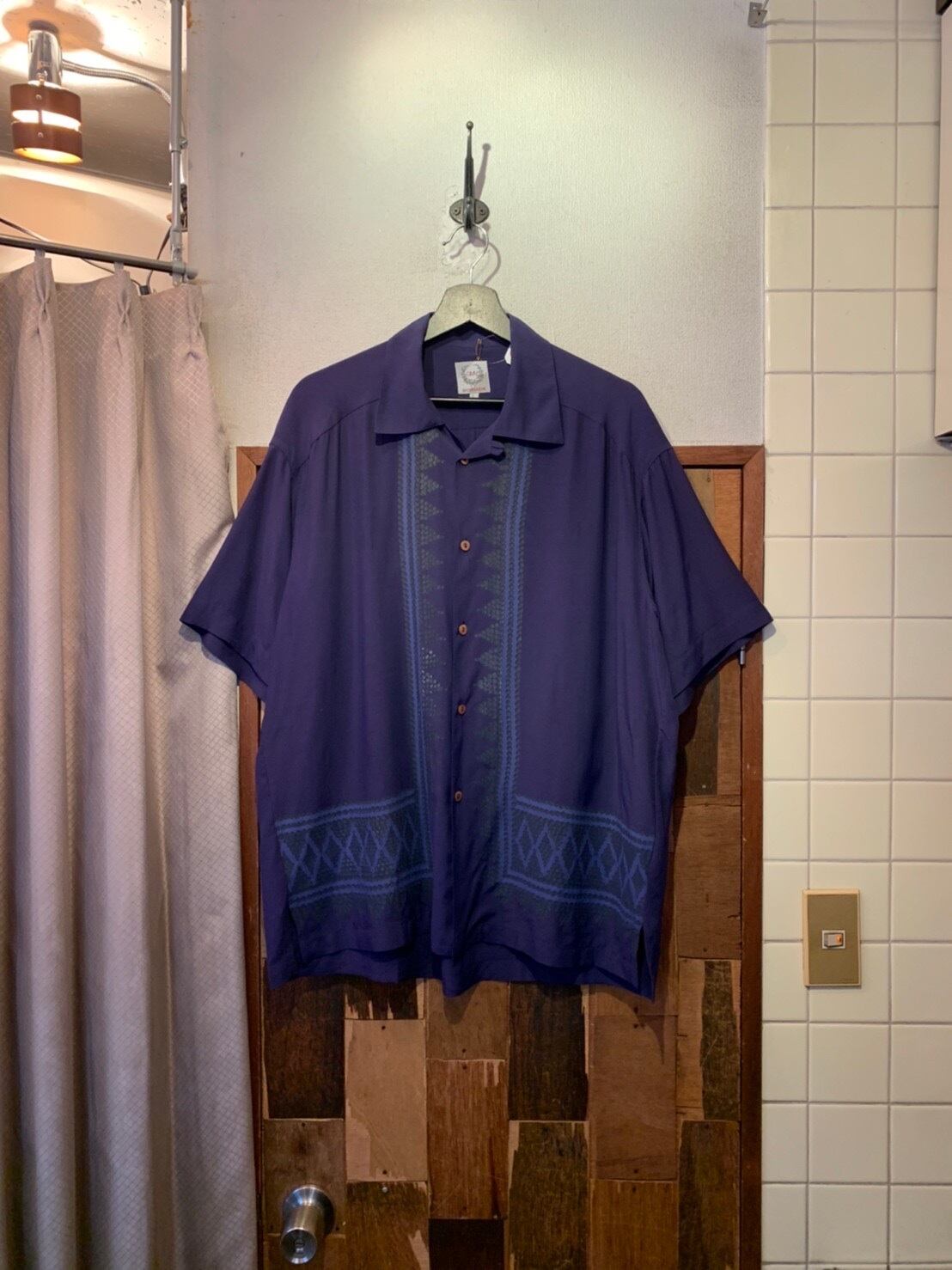 “GMV” made in ITALY dark purple viscose unique printed S/S open-collar shirt