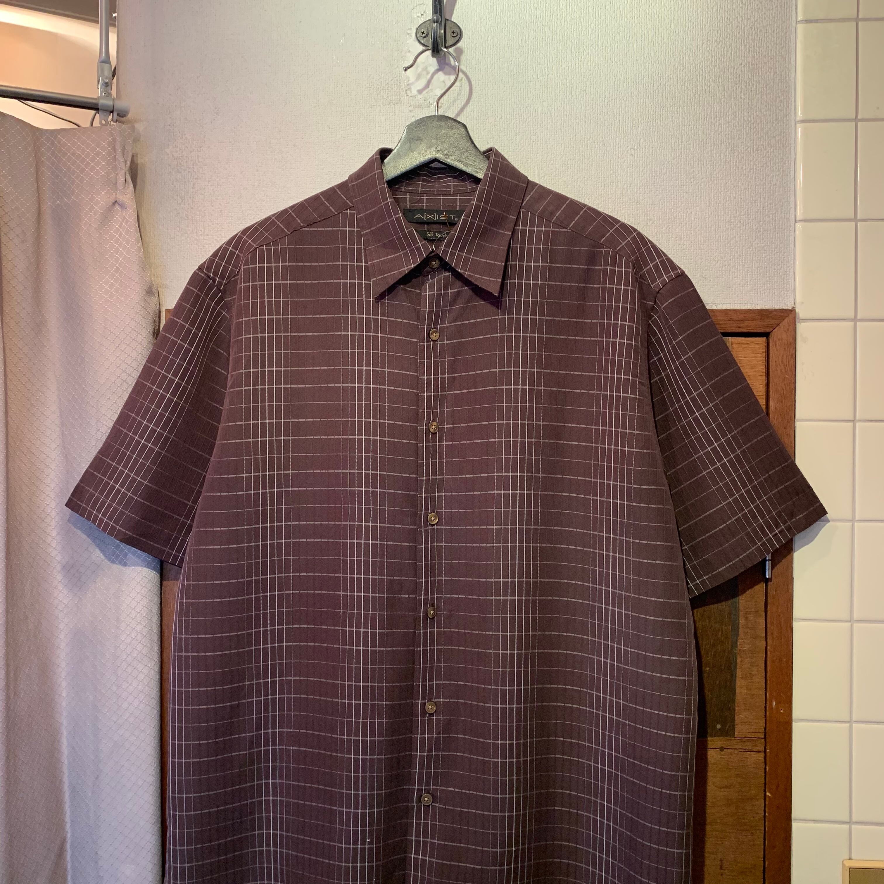“AXIST” brown×white modal/poly repeating pattern S/S shirt