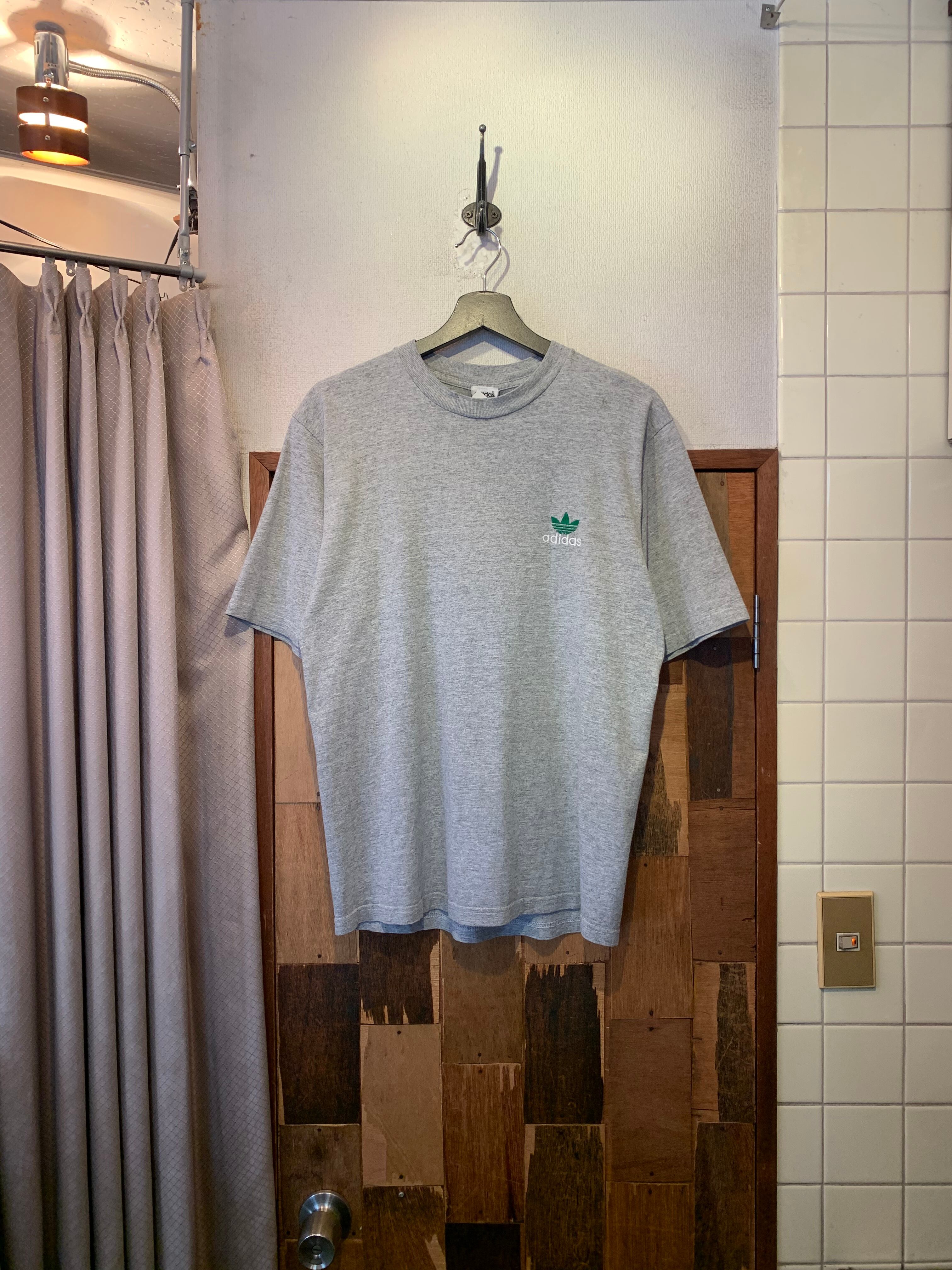 “adidas” ~90’s gray cotton point logo S/S T-shirt made in USA