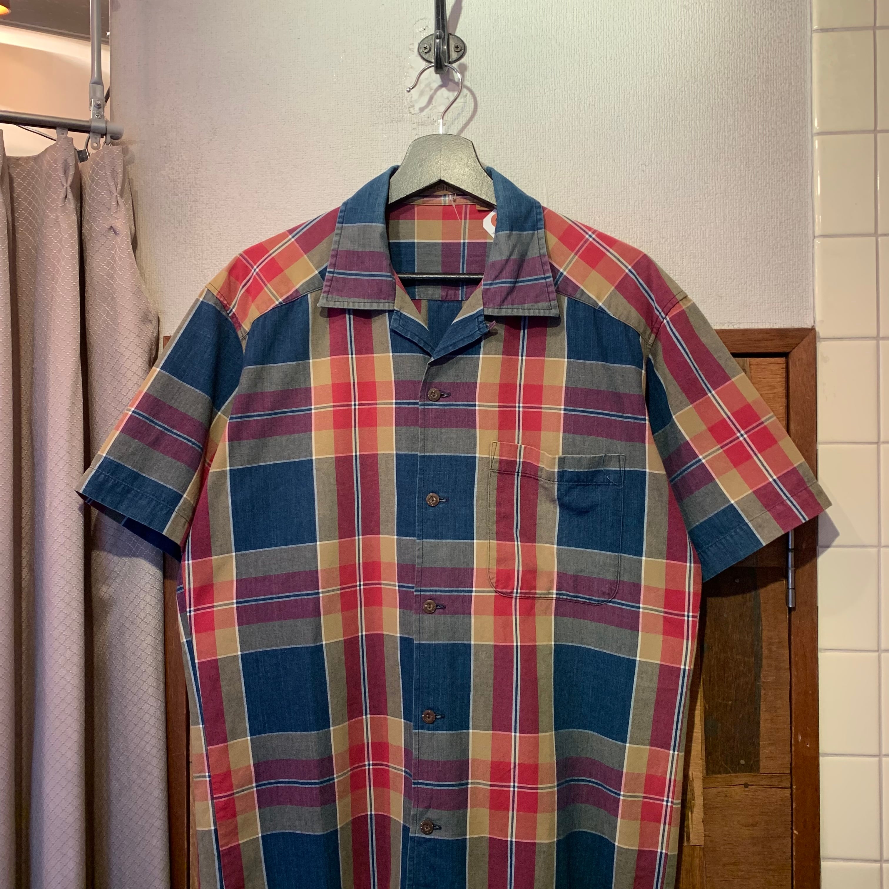 “RUFF HEWN” multi color check pattern S/S open-collar shirt