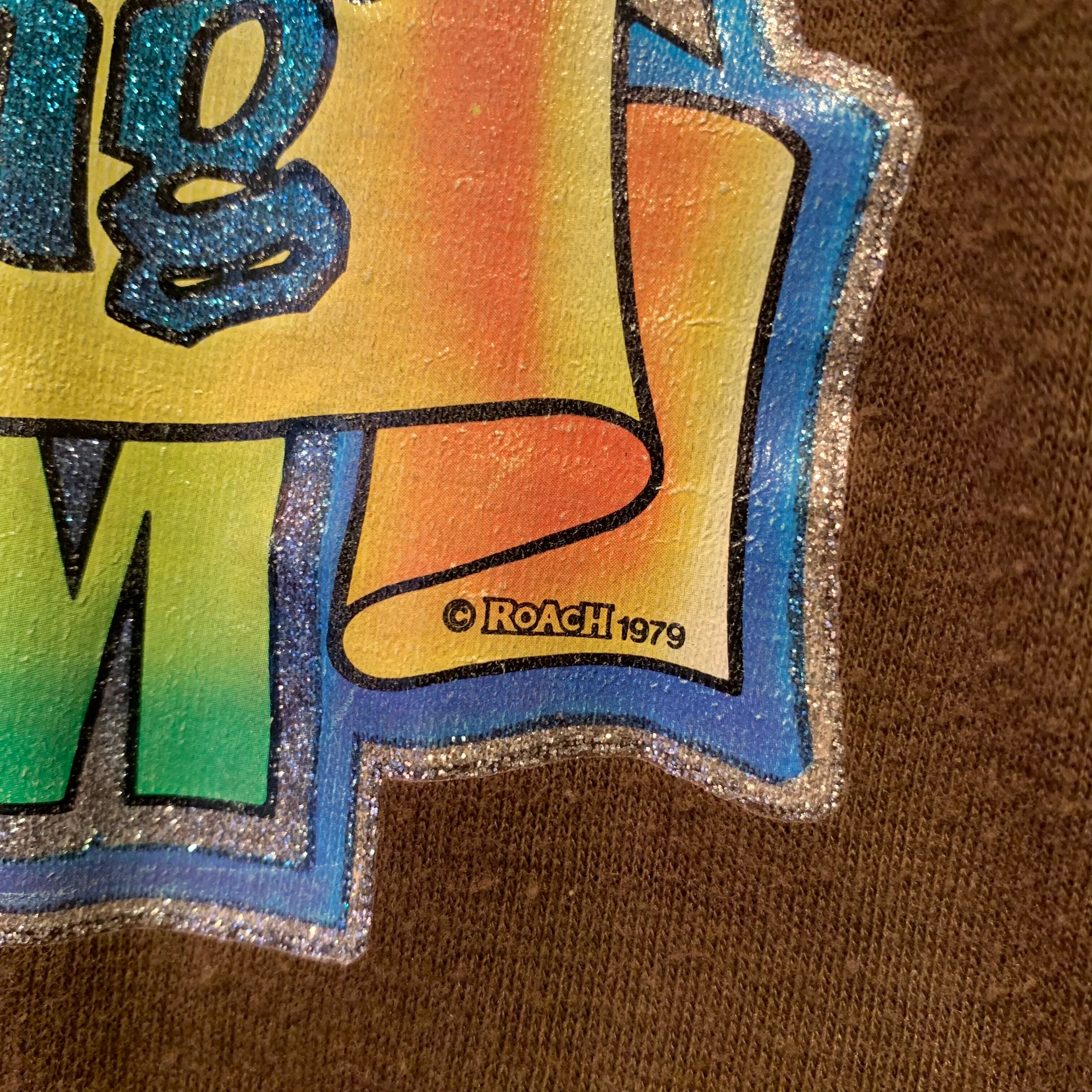 “brand unknown” ©︎1979 brown lame printed S/S T-shirt