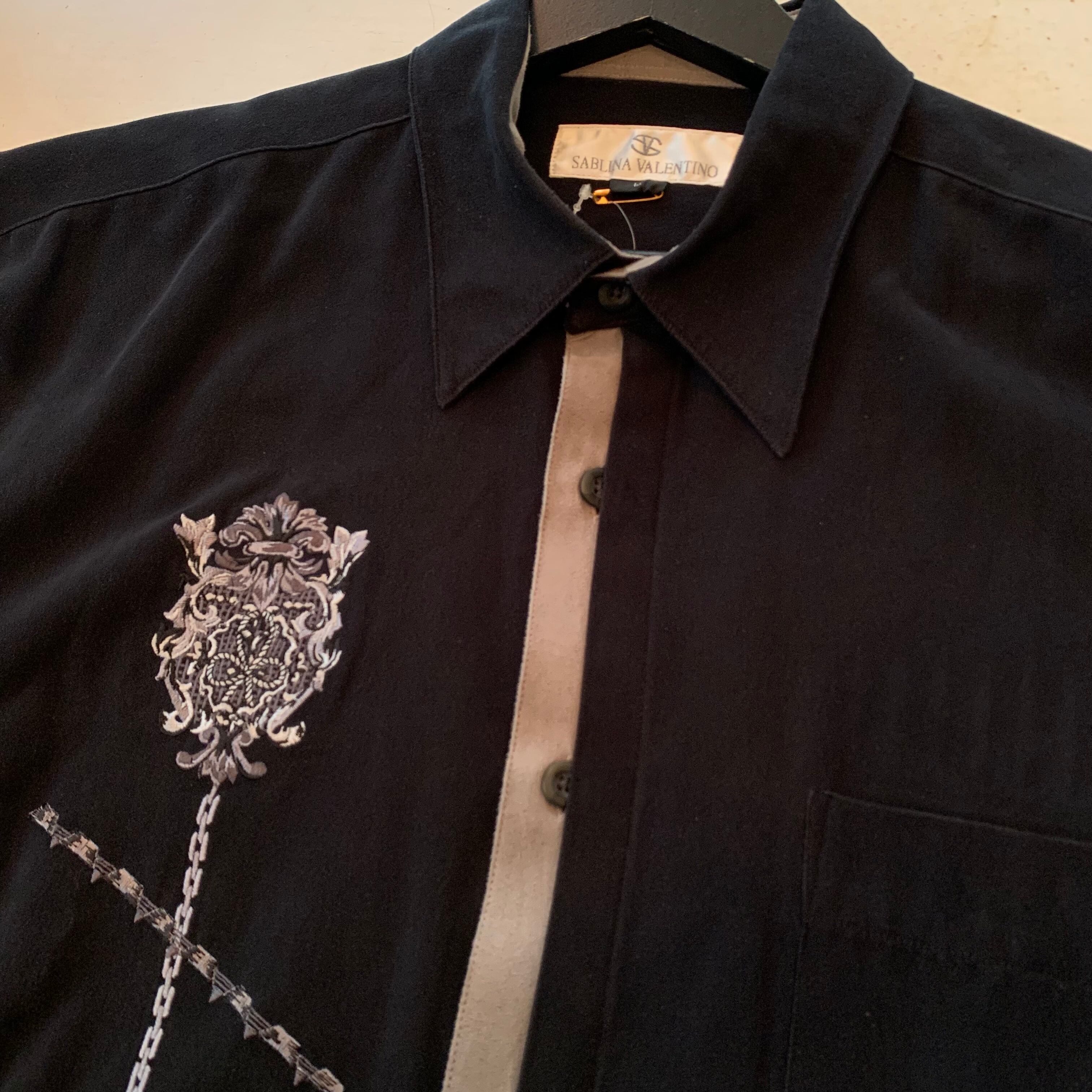 “SABLINA VALENTINO” black suede touch embroidery design L/S shirt