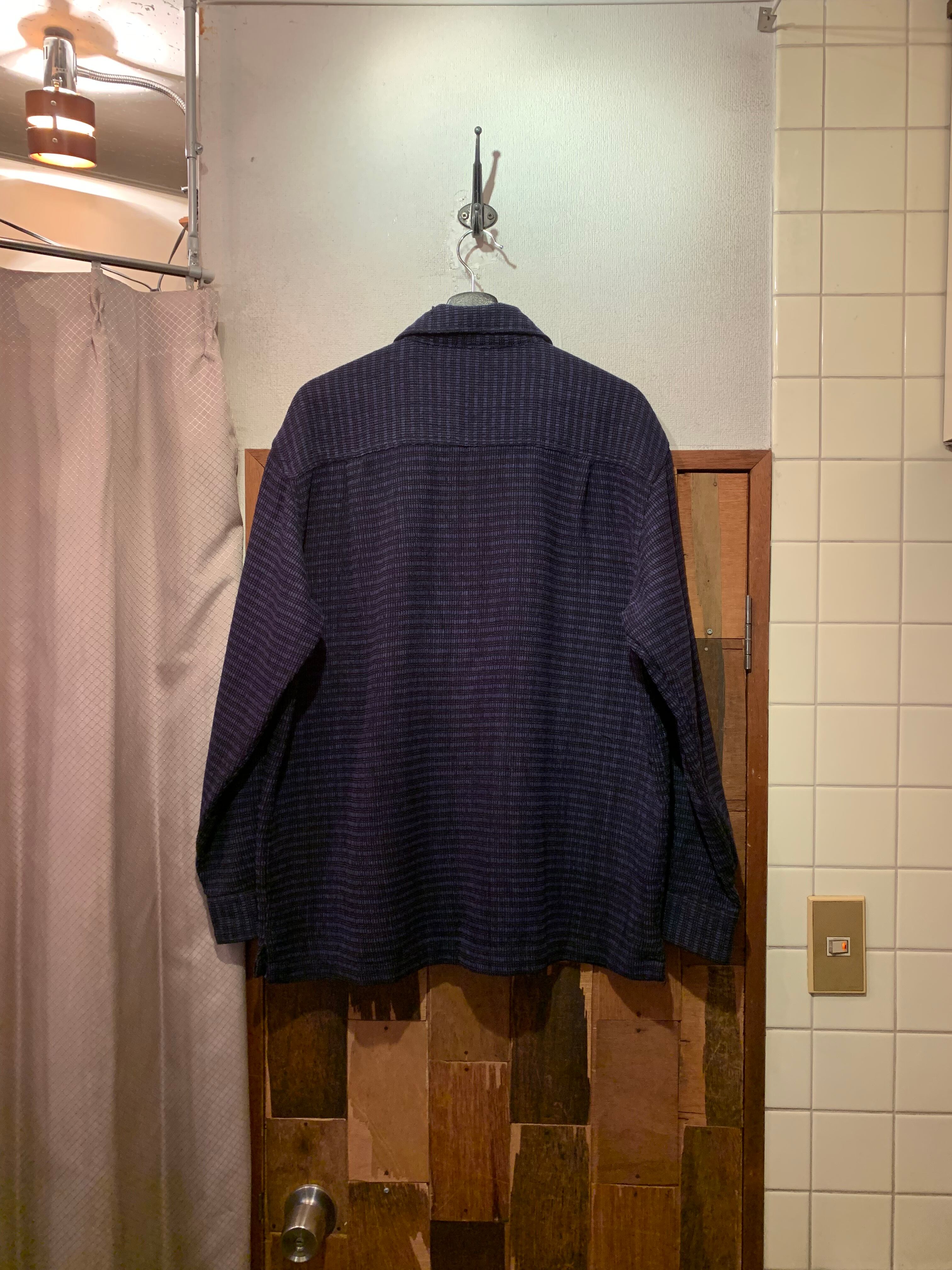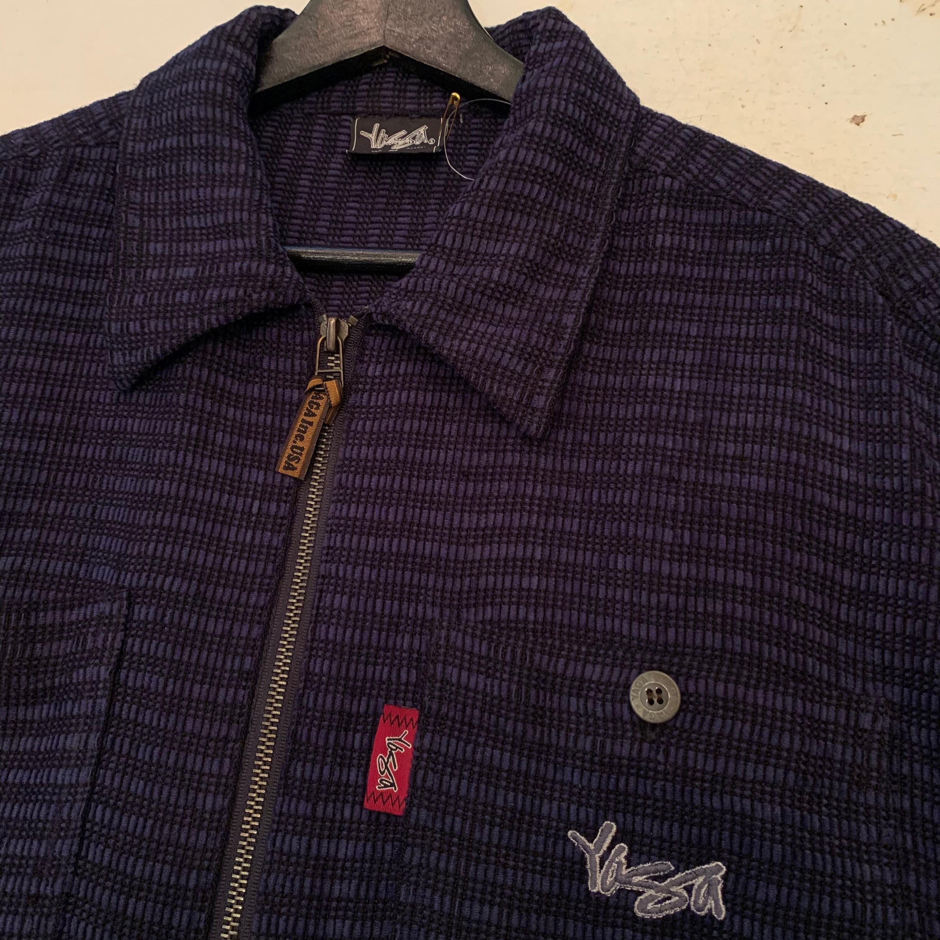 “YAGA” navy base acrylic repeating pattern corduroy zip-up shirt jacket