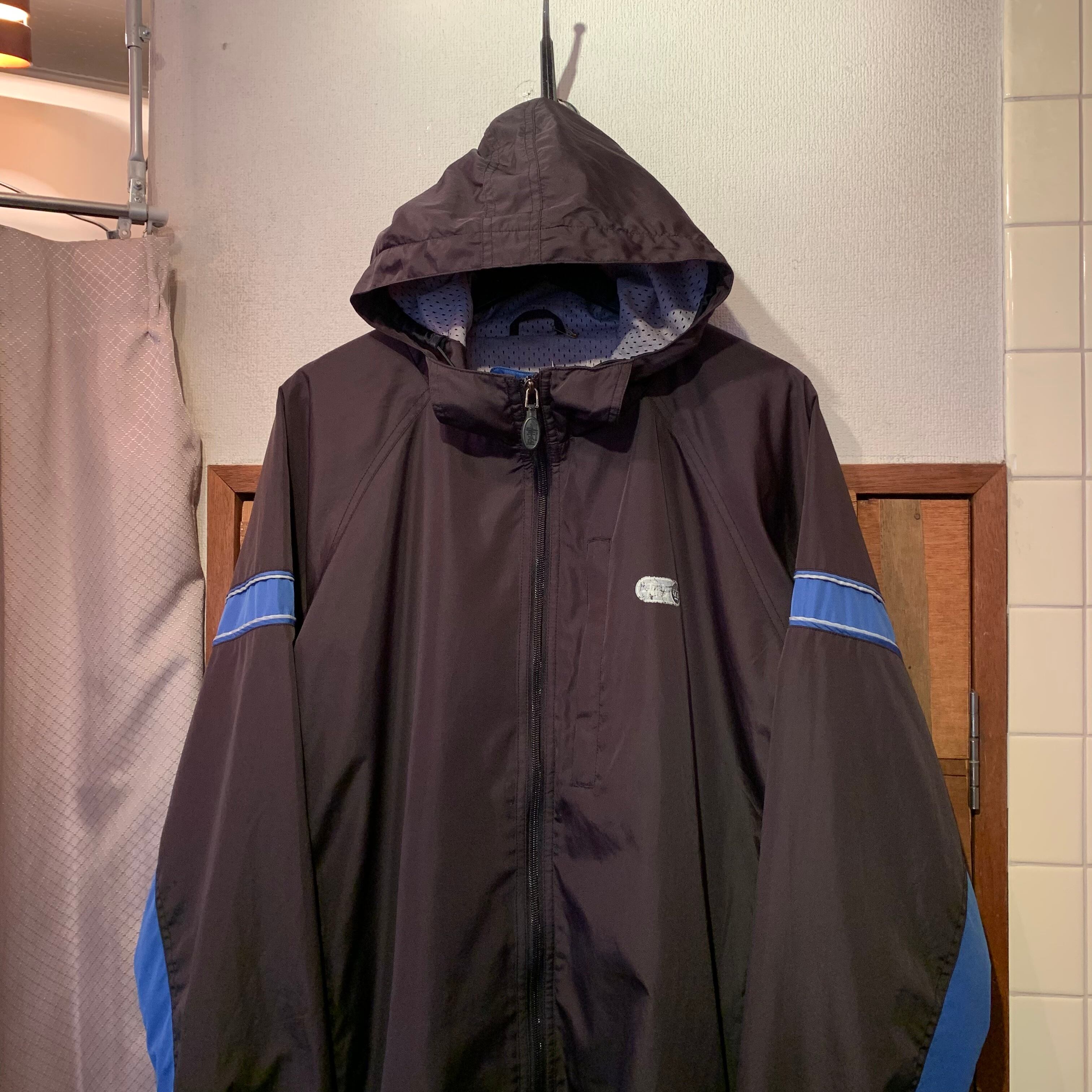 “stussy” 90’s black×blue nylon zip-up hooded jacket
