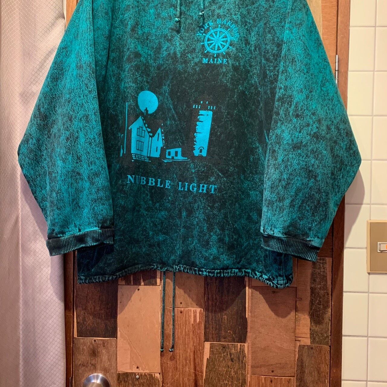 “PHOENIX” 80's~90's turquoise×green×black base cotton over dye design L/S pullover