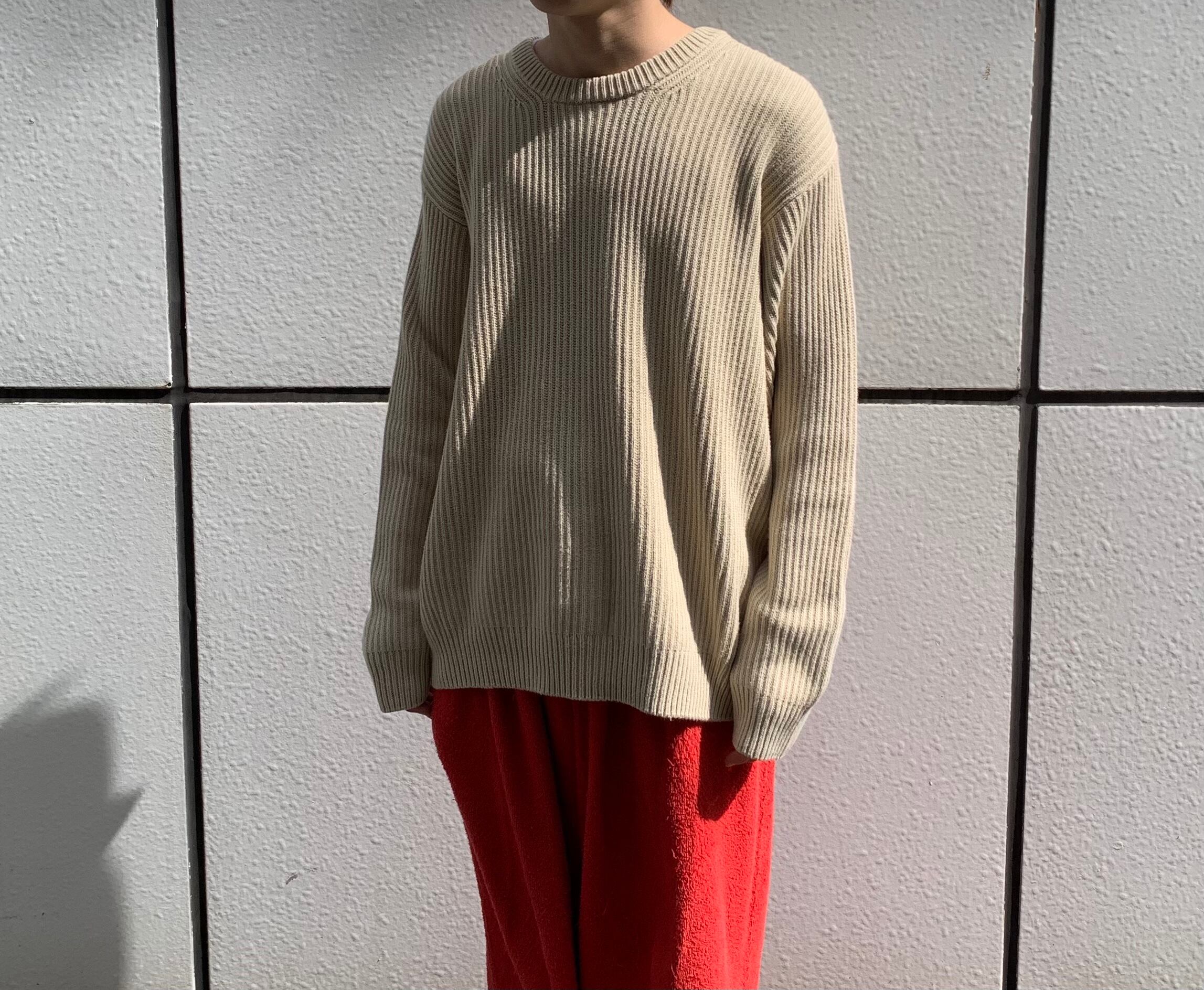“L.L.BEAN” 90's cream cotton design L/S knit sweater