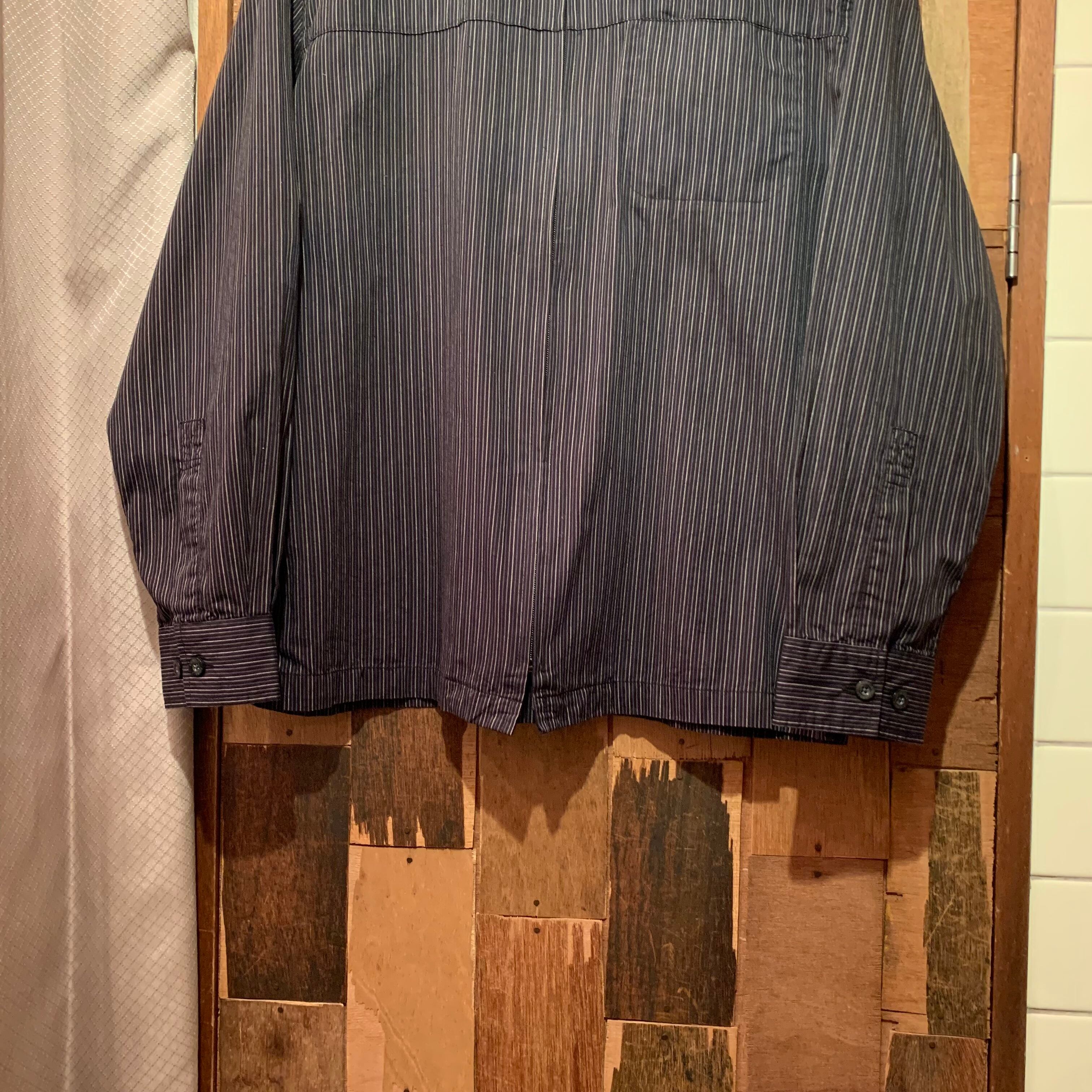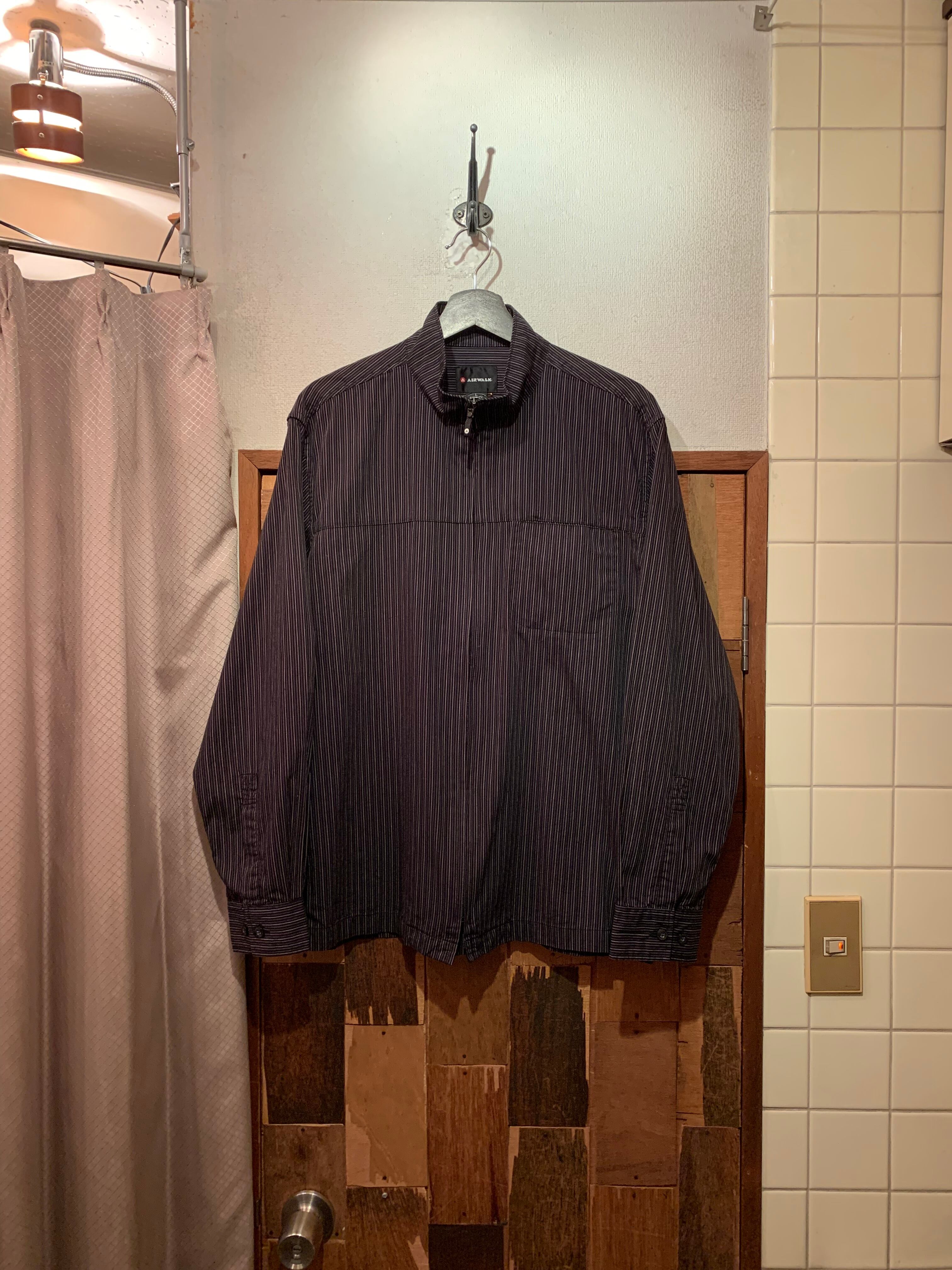 “air walk” dead stock‼︎ charcoal cotton stripe pattern high-neck zip-up shirt