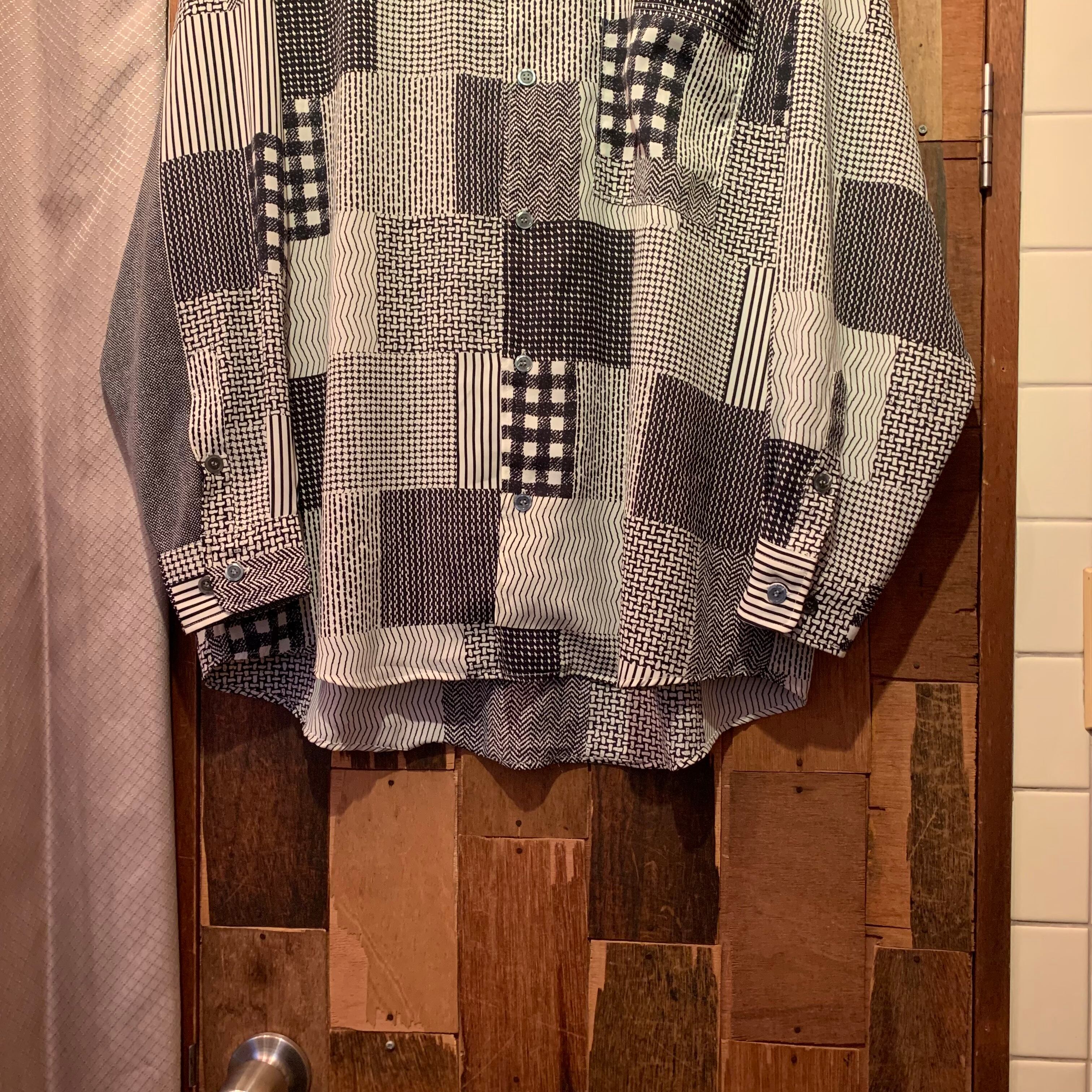 “TAKILIA” white×black polyester repeating pattern L/S shirt