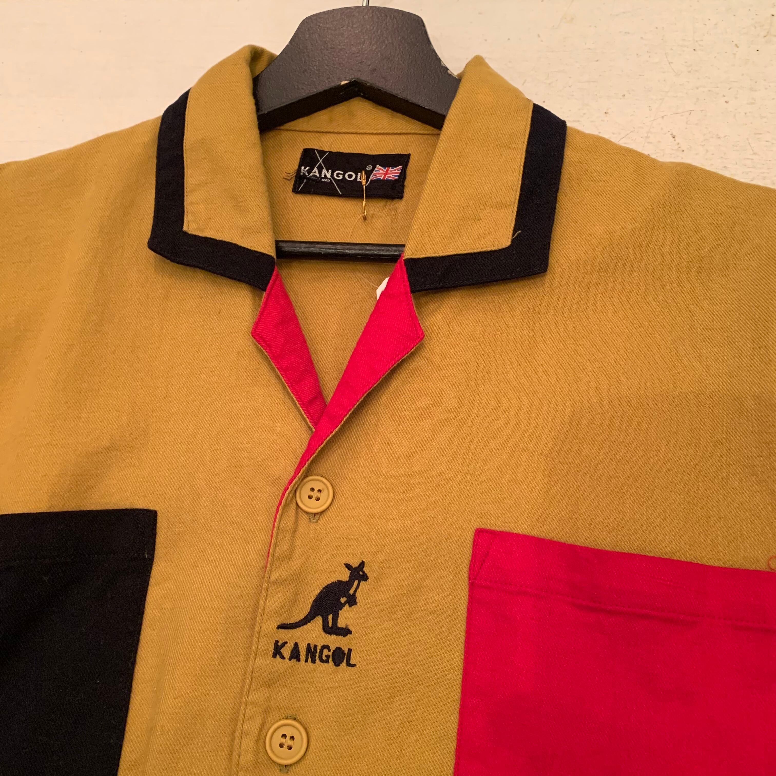 “KANGOL” ocher×red×black cotton embroidery&switch design L/S shirt