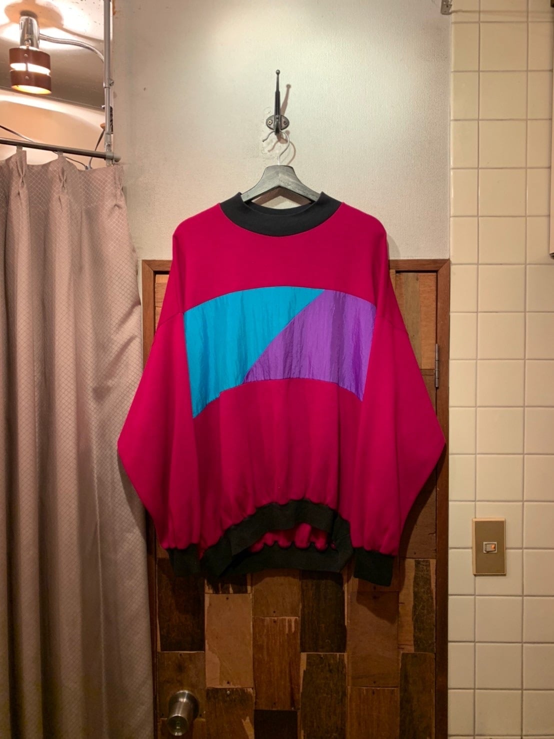 “JUMP” 80's~90's made in U.S.A multi color acrylic/nylon switch design mock-neck design sweat