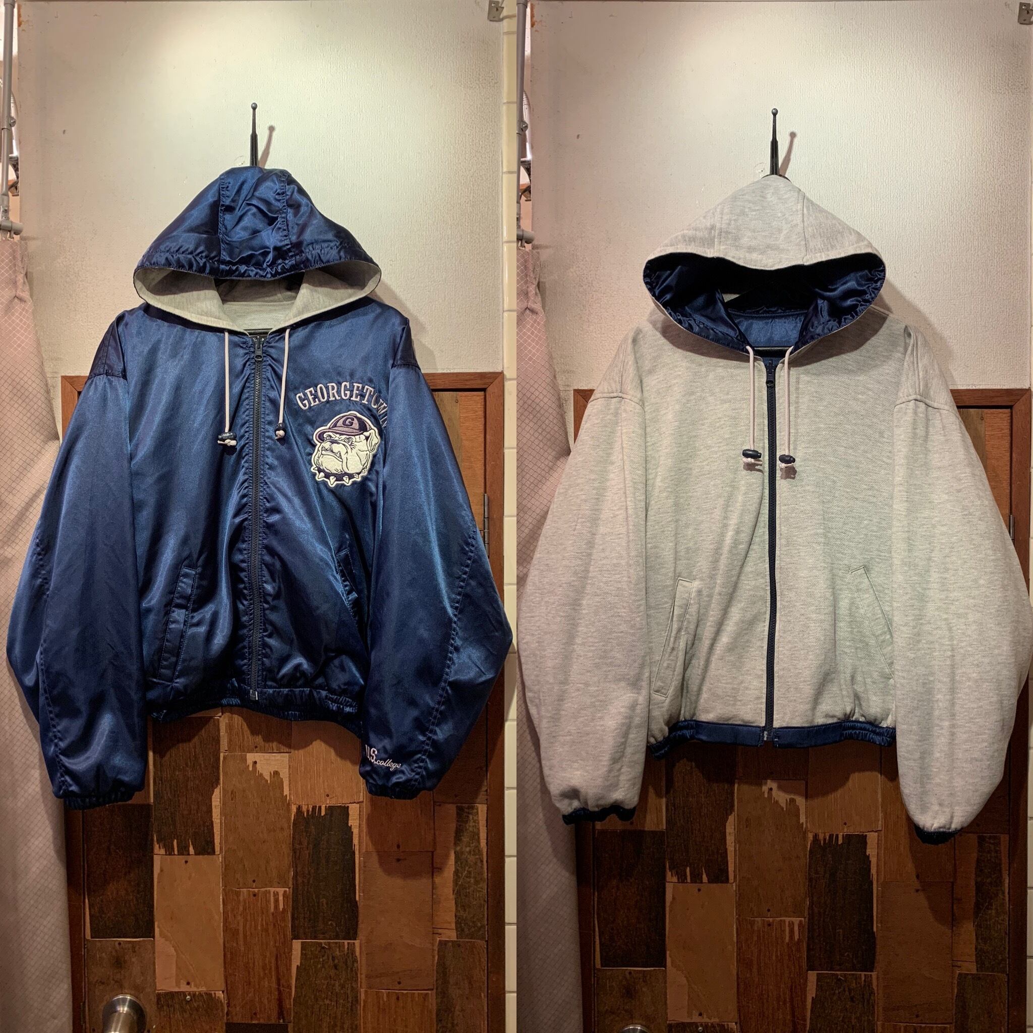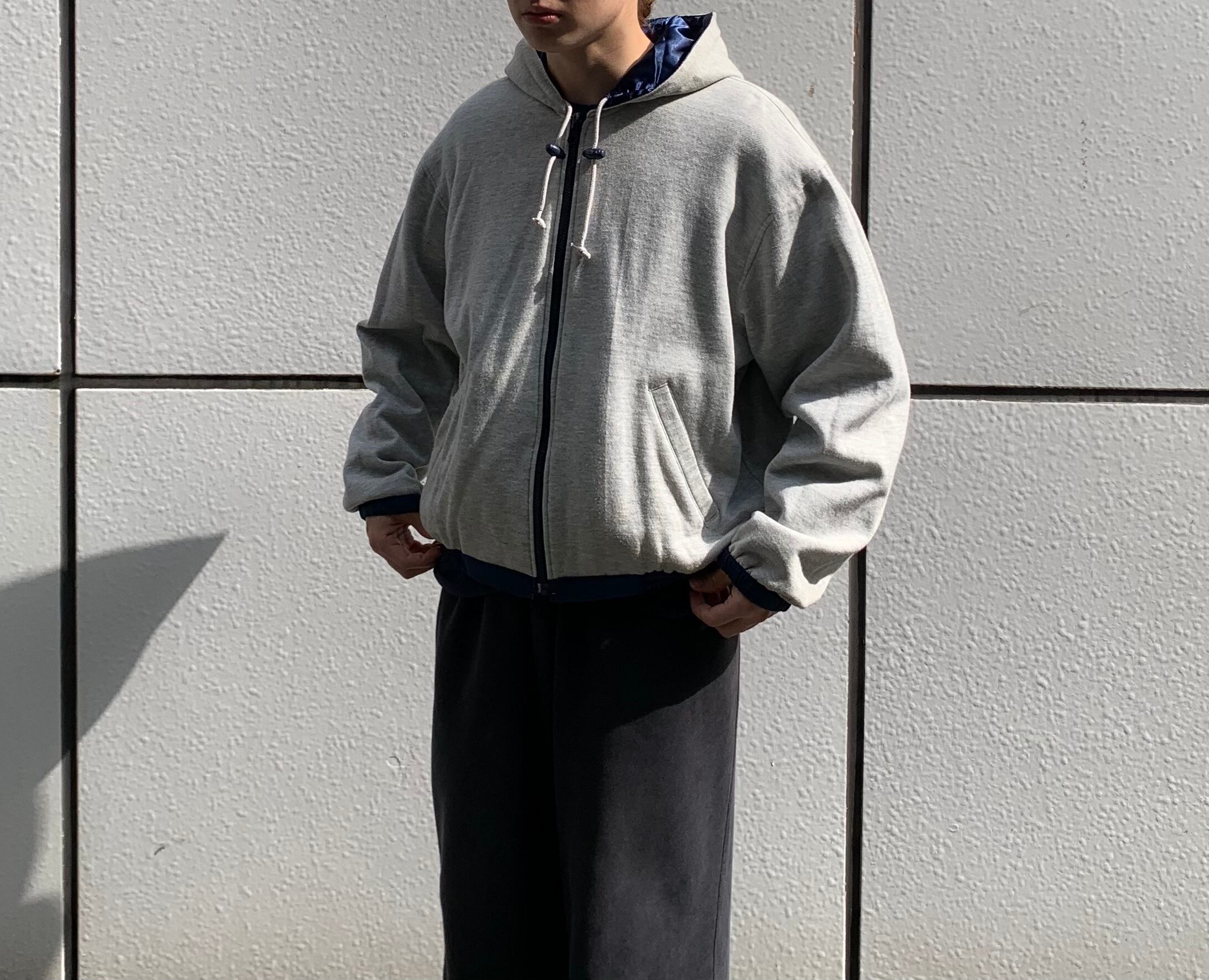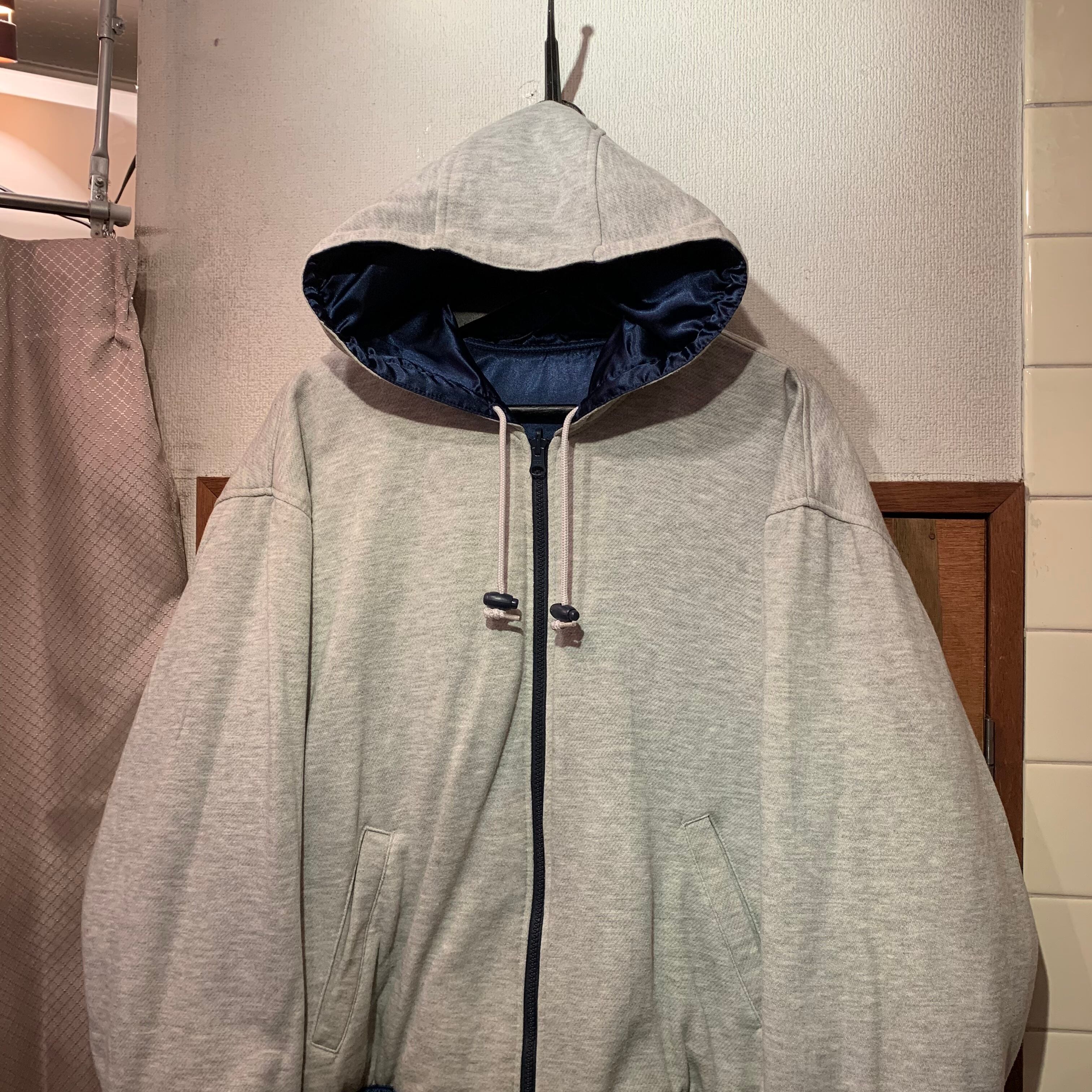 “brand unknown” navy×light gray nylon/poly/cotton reversible hooded blouson