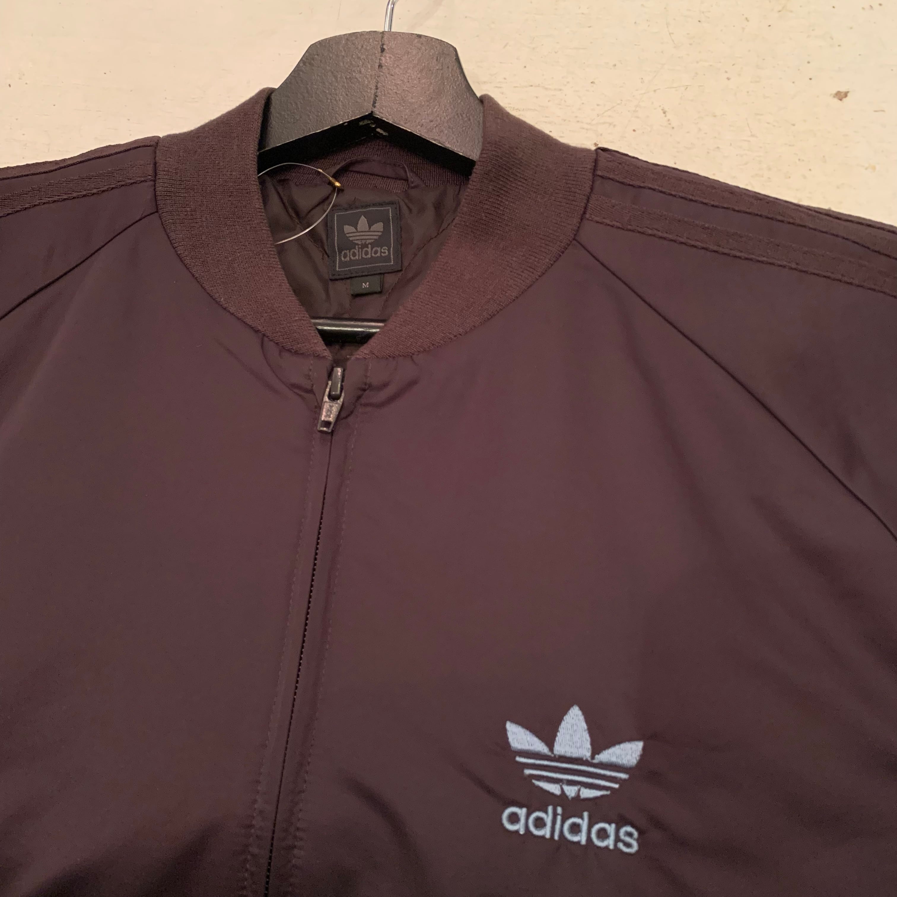 “adidas” 00’s brown×ice blue polyester line&logo design zip-up blouson