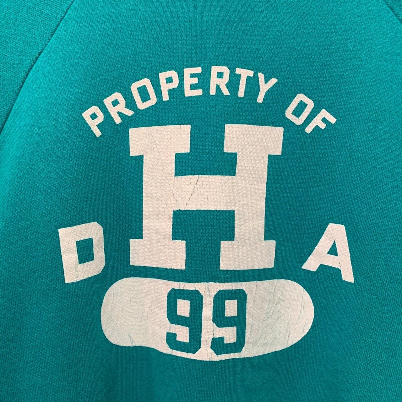 “Hanes” 80's~90's U.S.A turquoise green cotton/acrylic printed L/S sweat