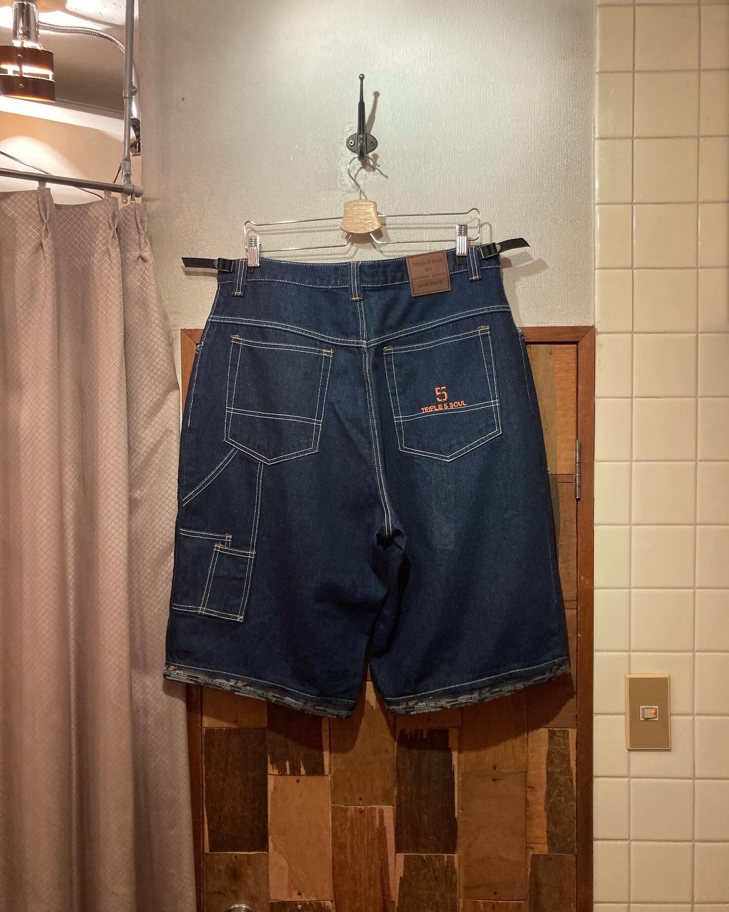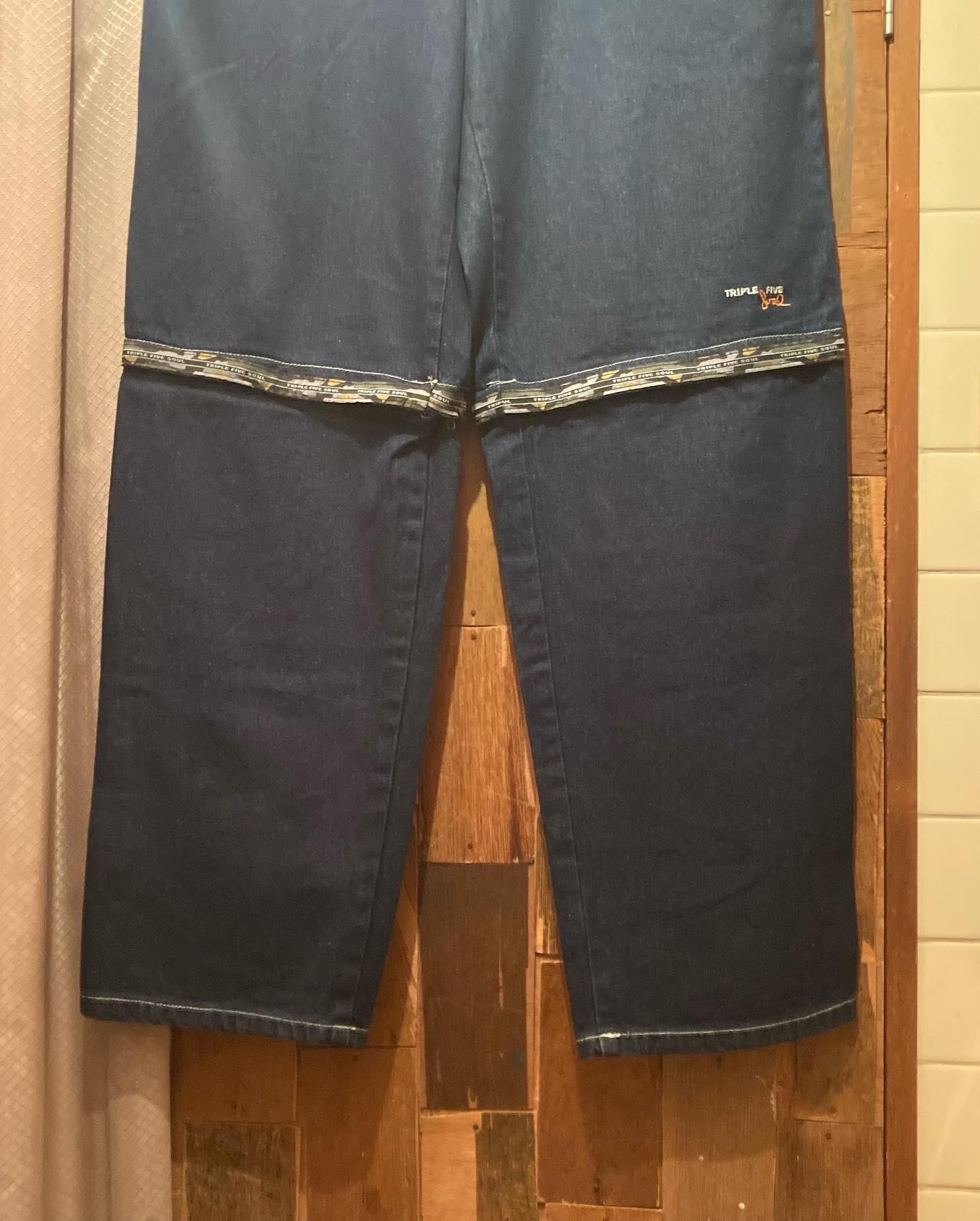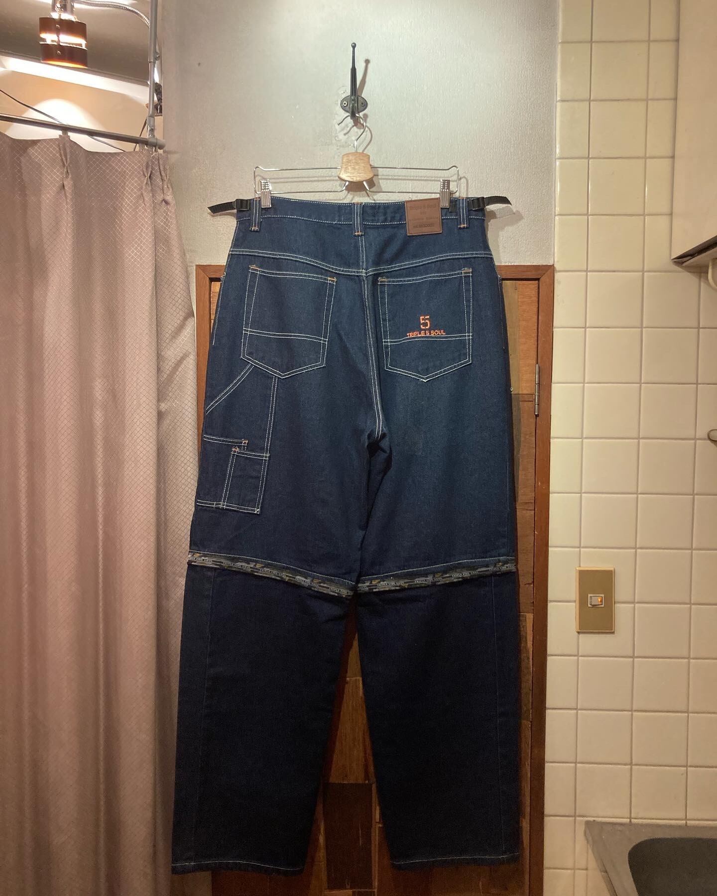“Triple 5 soul” indigo blue embroidery 2way wide denim pants