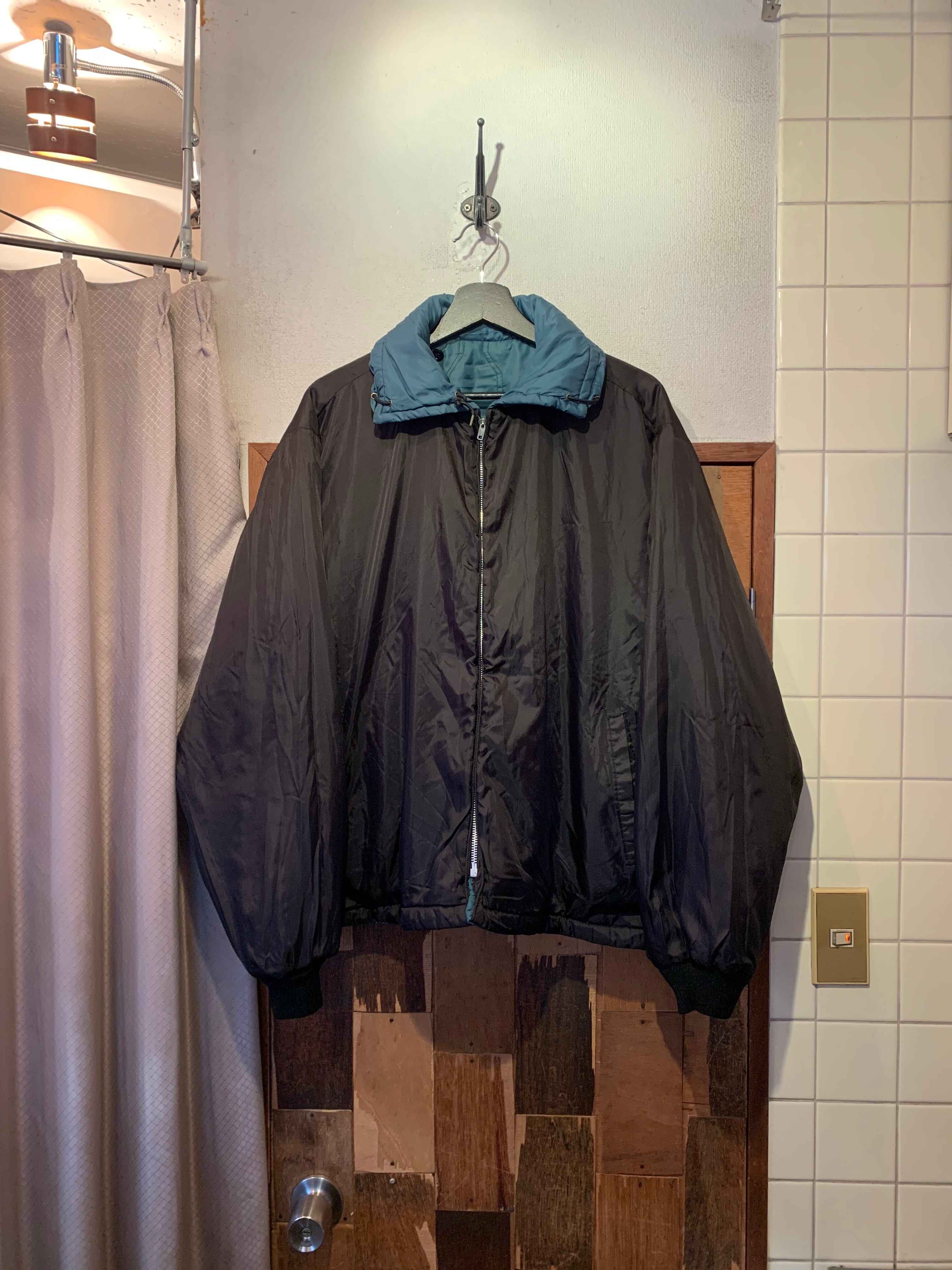 “brand unknown” 70’s~80’s moss green×black zip-up quilting jacket reversible!!