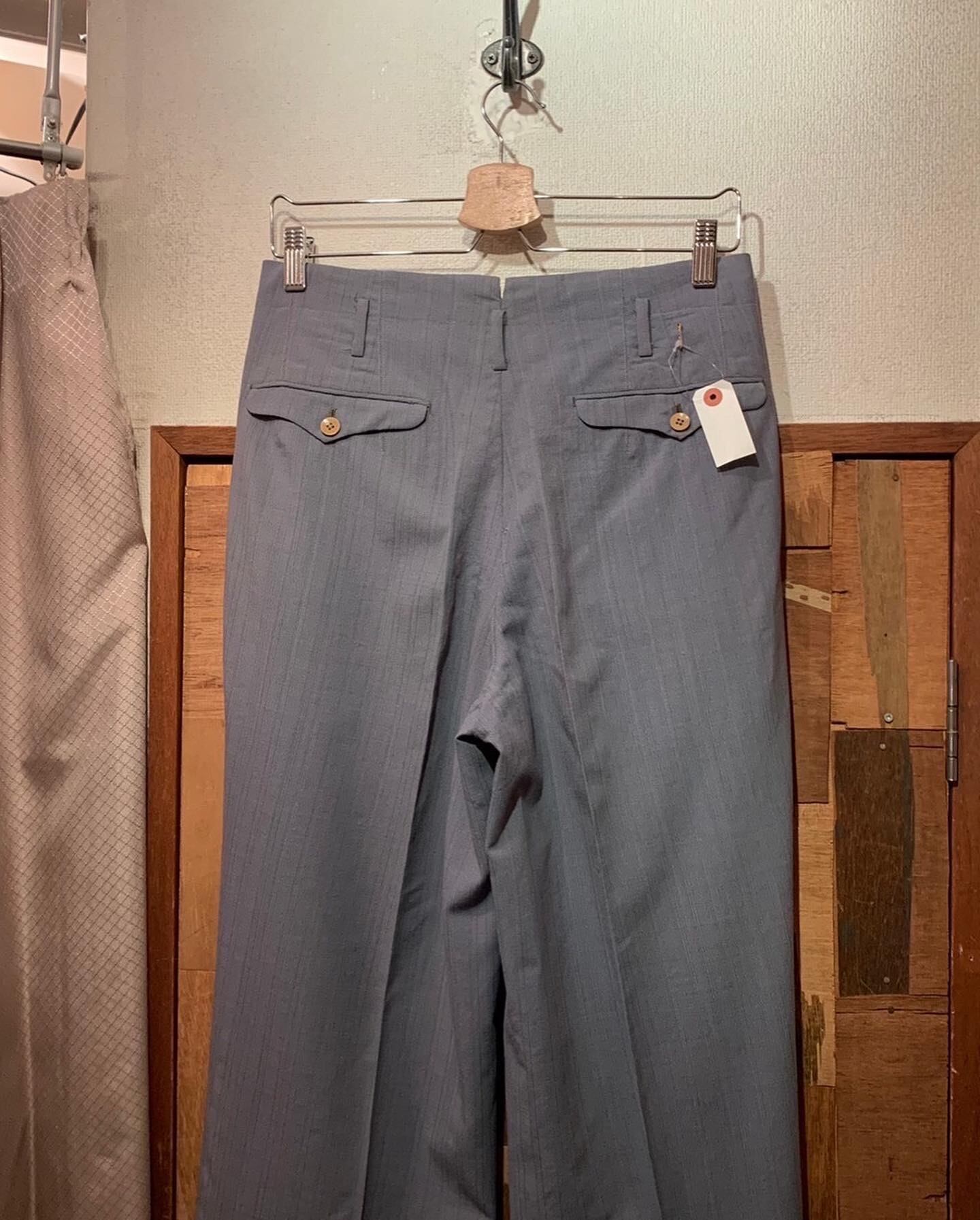 “brand unknown” 60's~vintage light blue base stripe pattern 2tuck slacks