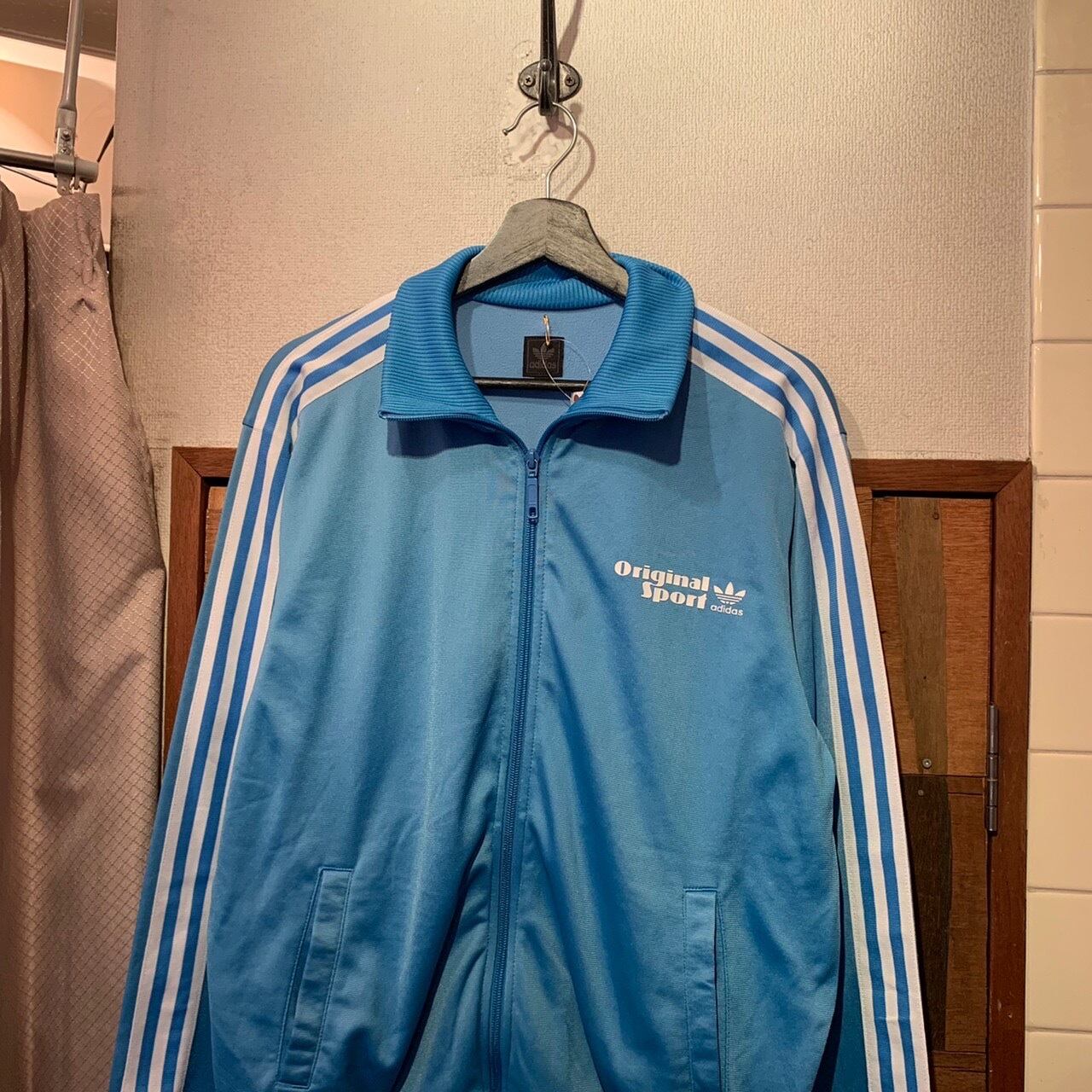 “adidas” 2005! light blue×white nylon/poly line&logo jersey