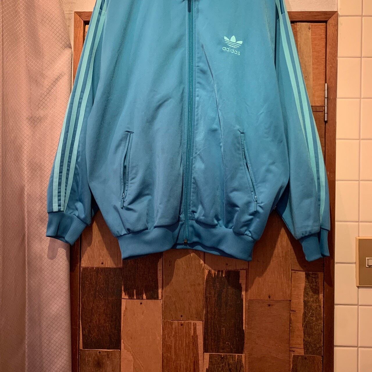 “adidas” turquoise blue base polyester line&logo design jersey