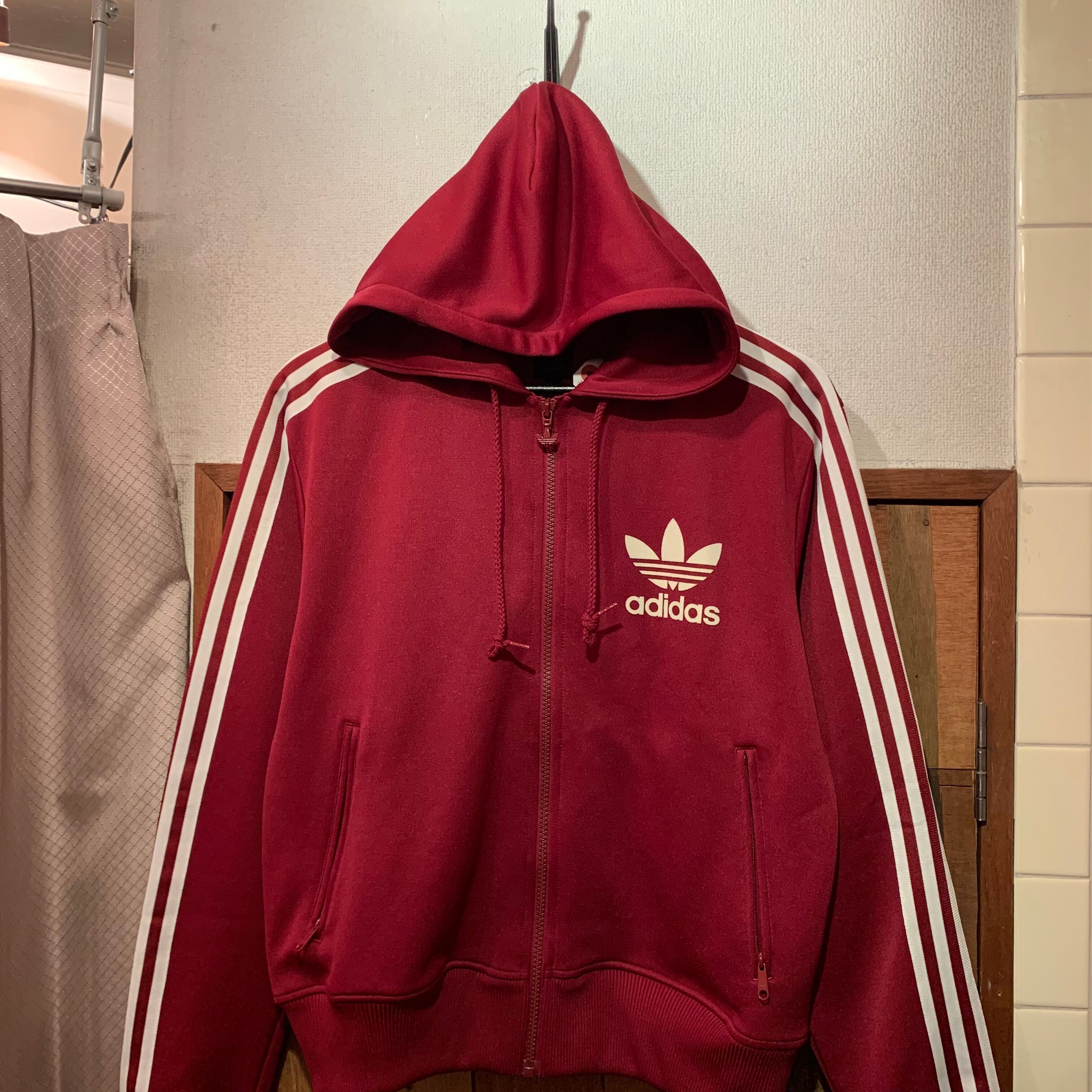 “adidas” 2009!! burgundy×white poly/cotton hoodie