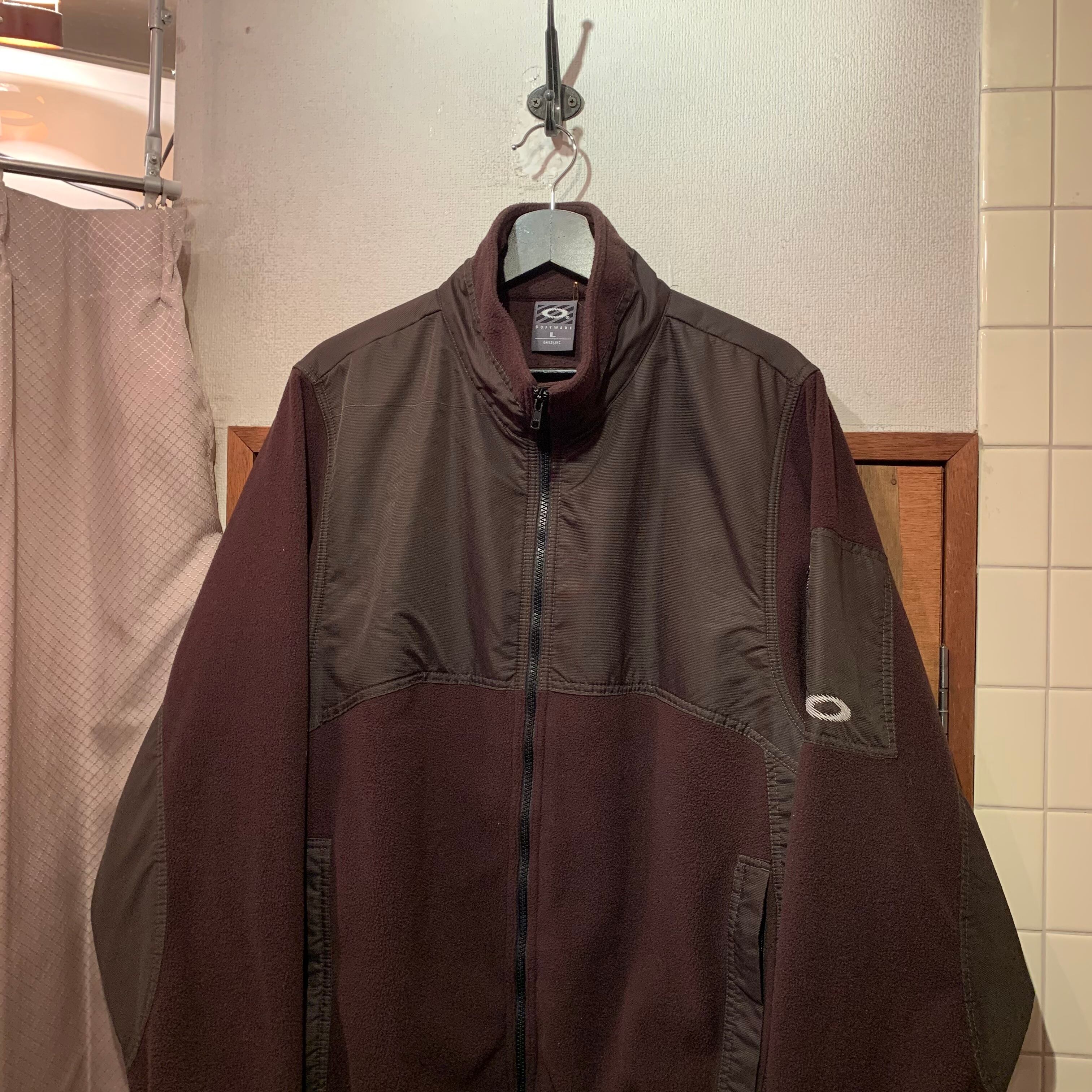 “OAKLEY” 00’s charcoal×brown switch design zip-up fleece jacket