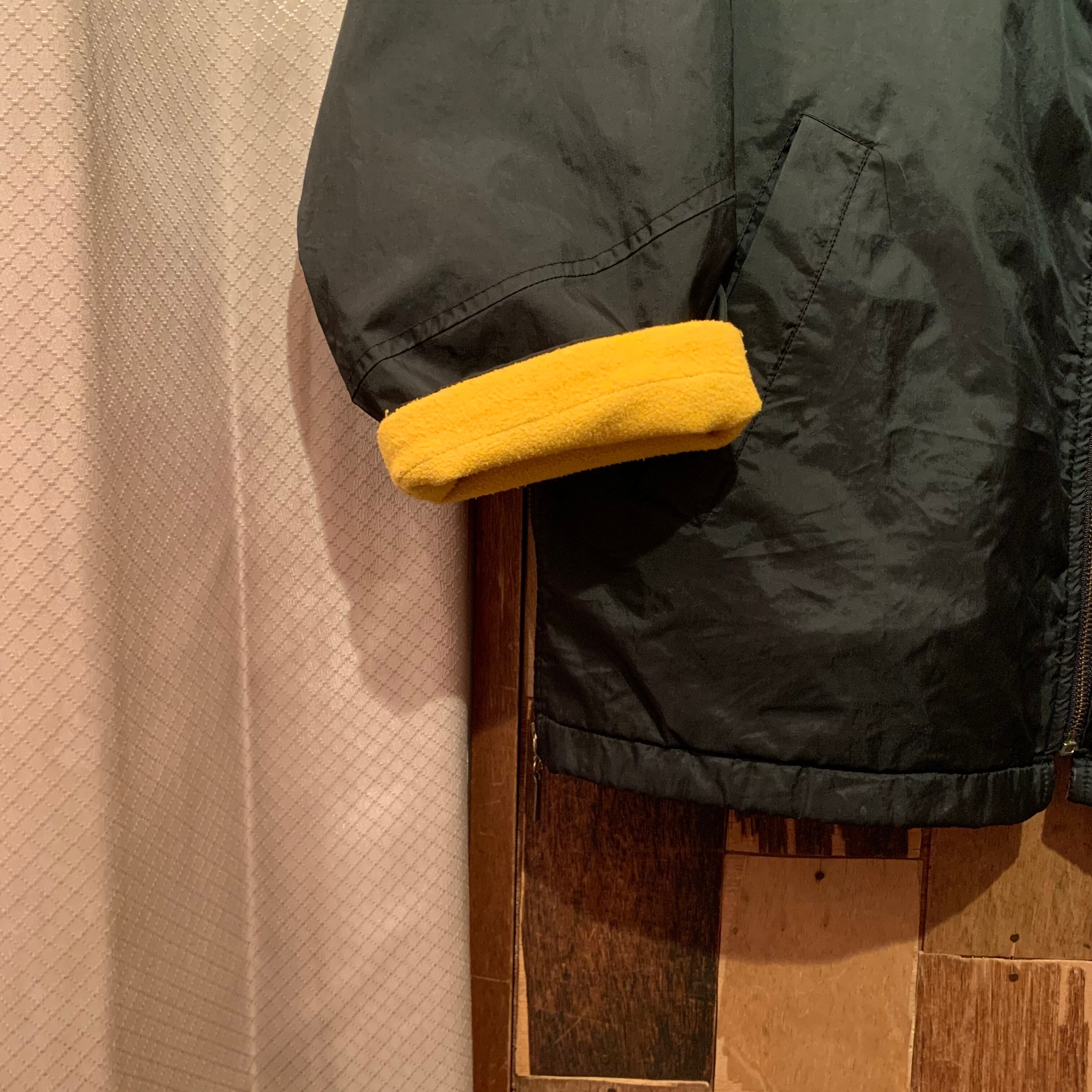 “DKNY” 00’s black nylon × yellow fleece design zip-up jacket