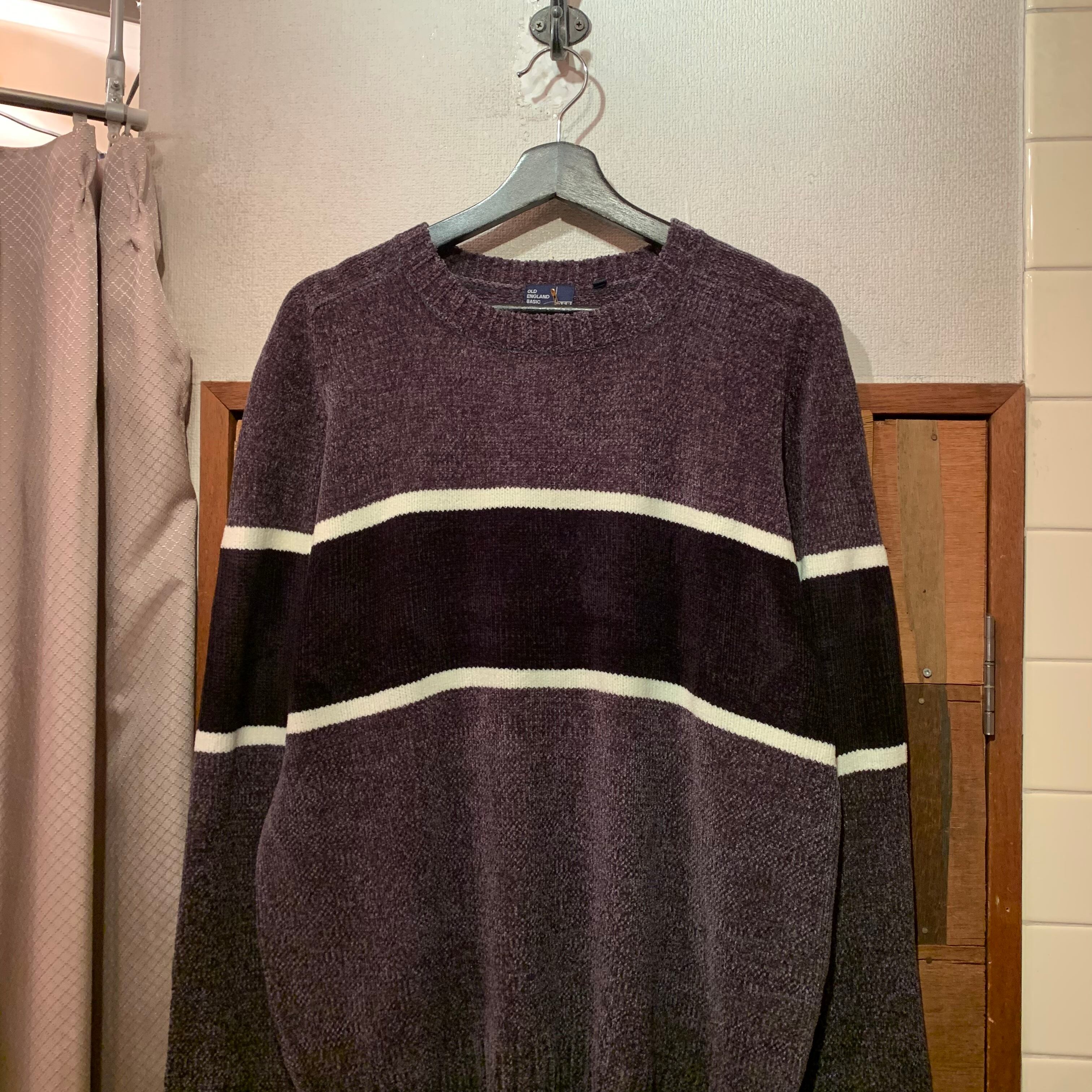 “OLD ENGLAND BASIC” charcoal×black×white acrylic/rayon design knit sweater