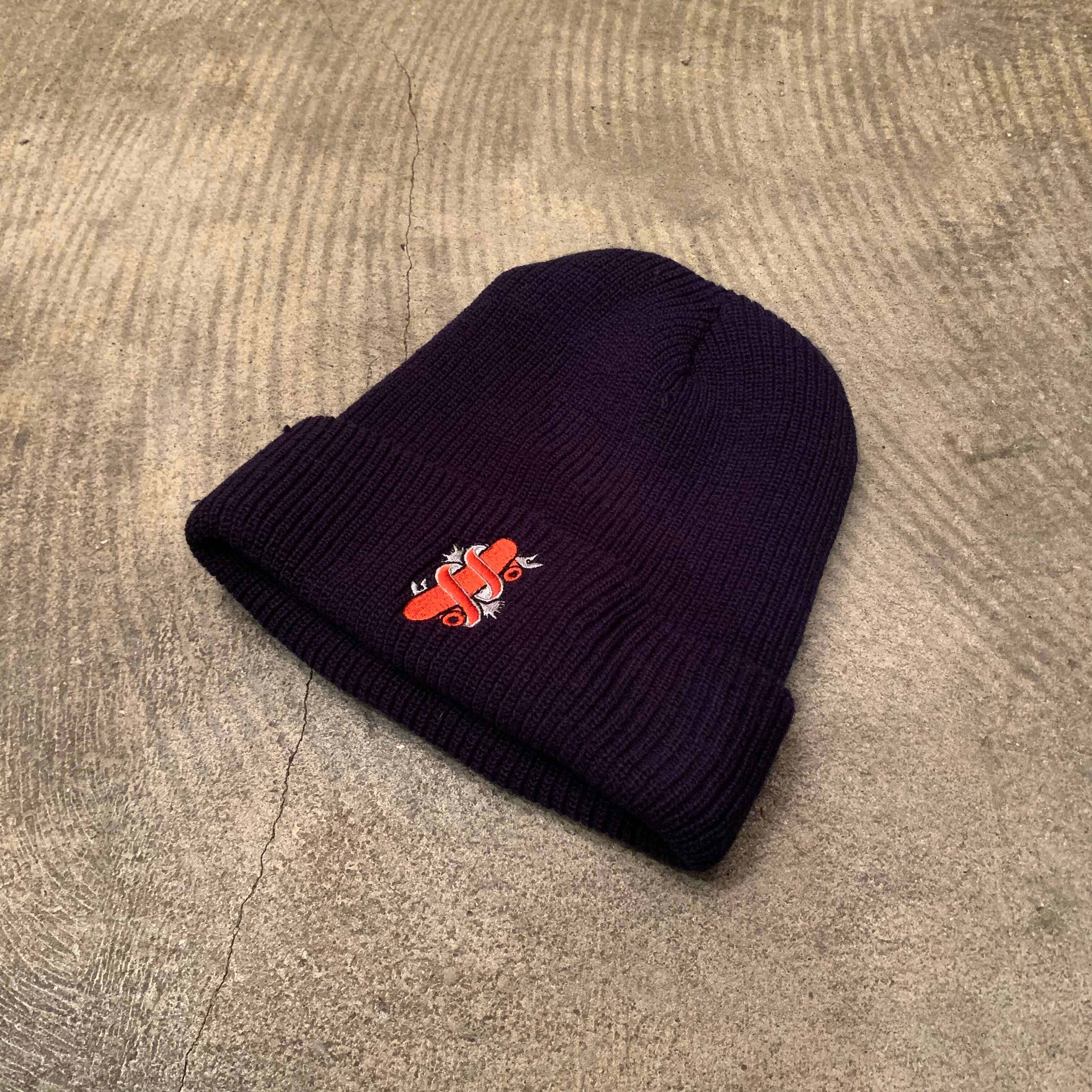 “brand unknown” dark navy acrylic knit cap