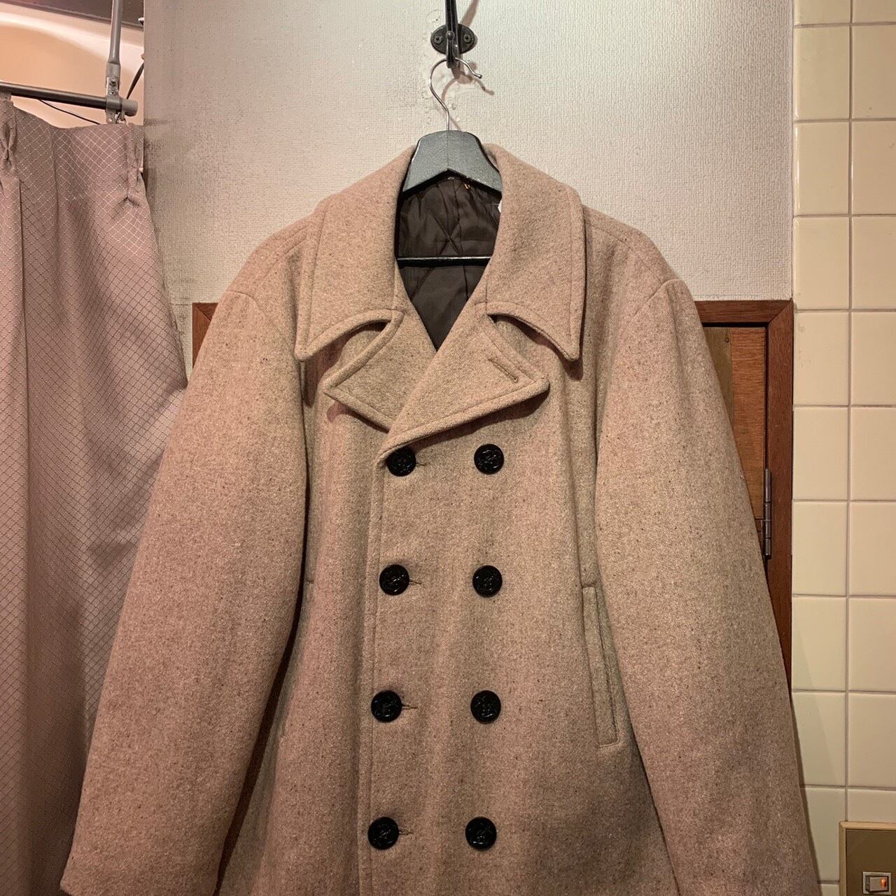 “brand unknown” made in U.S.A beige wool/nylon P-coat