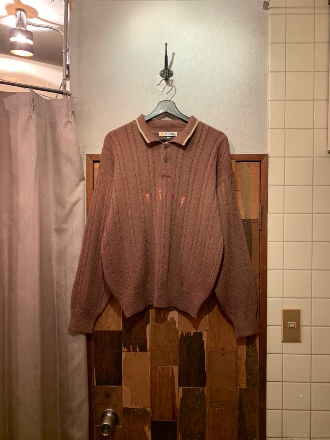 “AVENIDA” pink brown×ivory acrylic wool cable design knit sweater