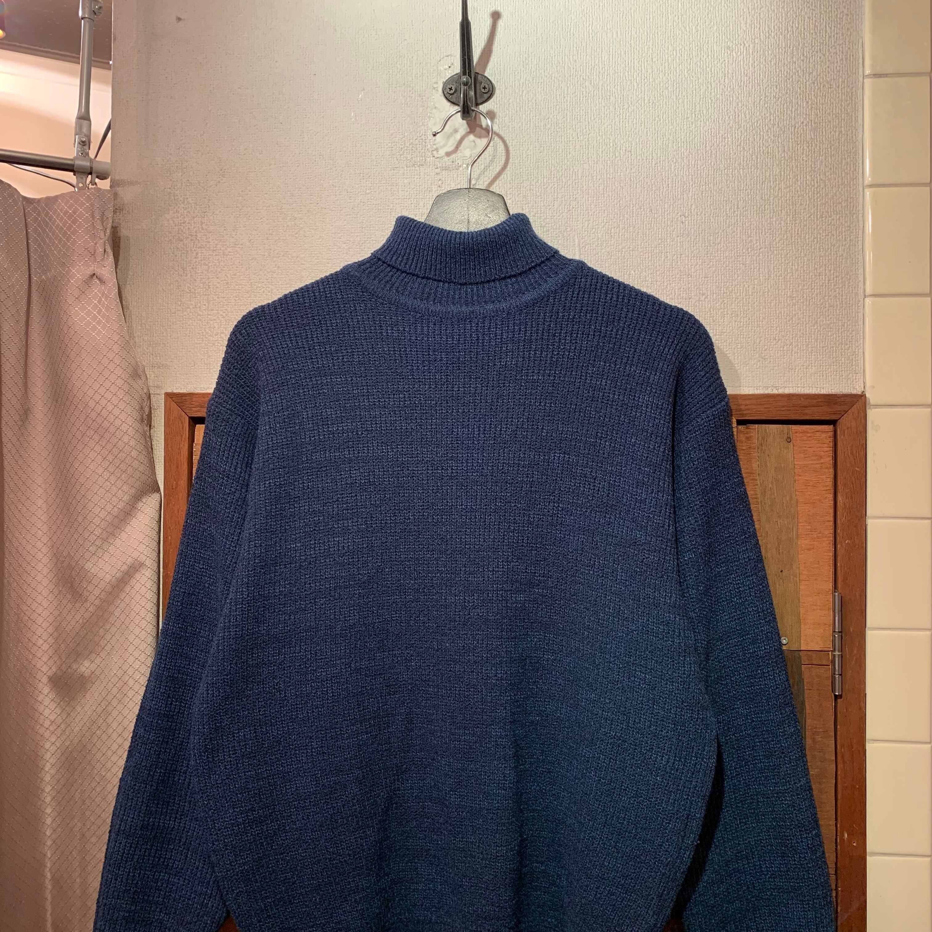 “ATATUF” navy blue acrylic/poly turtleneck knit sweater