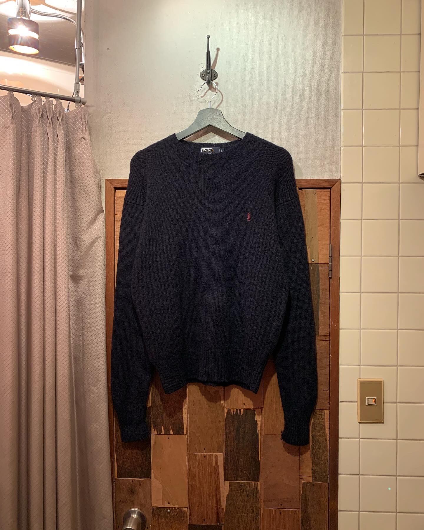 “Polo by Ralph Lauren” dark navy wool point logo knit sweater