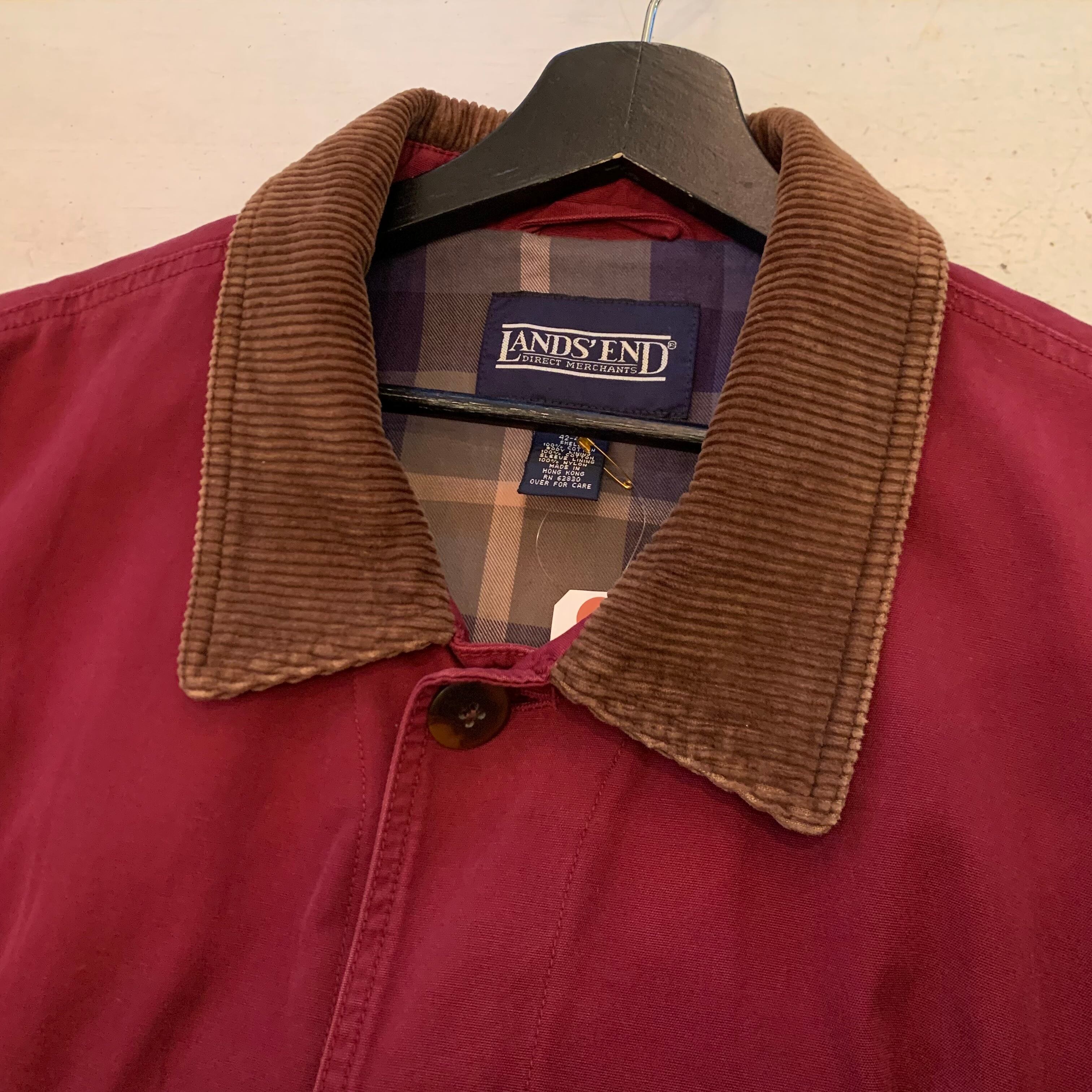 “LANDS’ END” 90’s red×brown cotton switch corduroy collar coverall