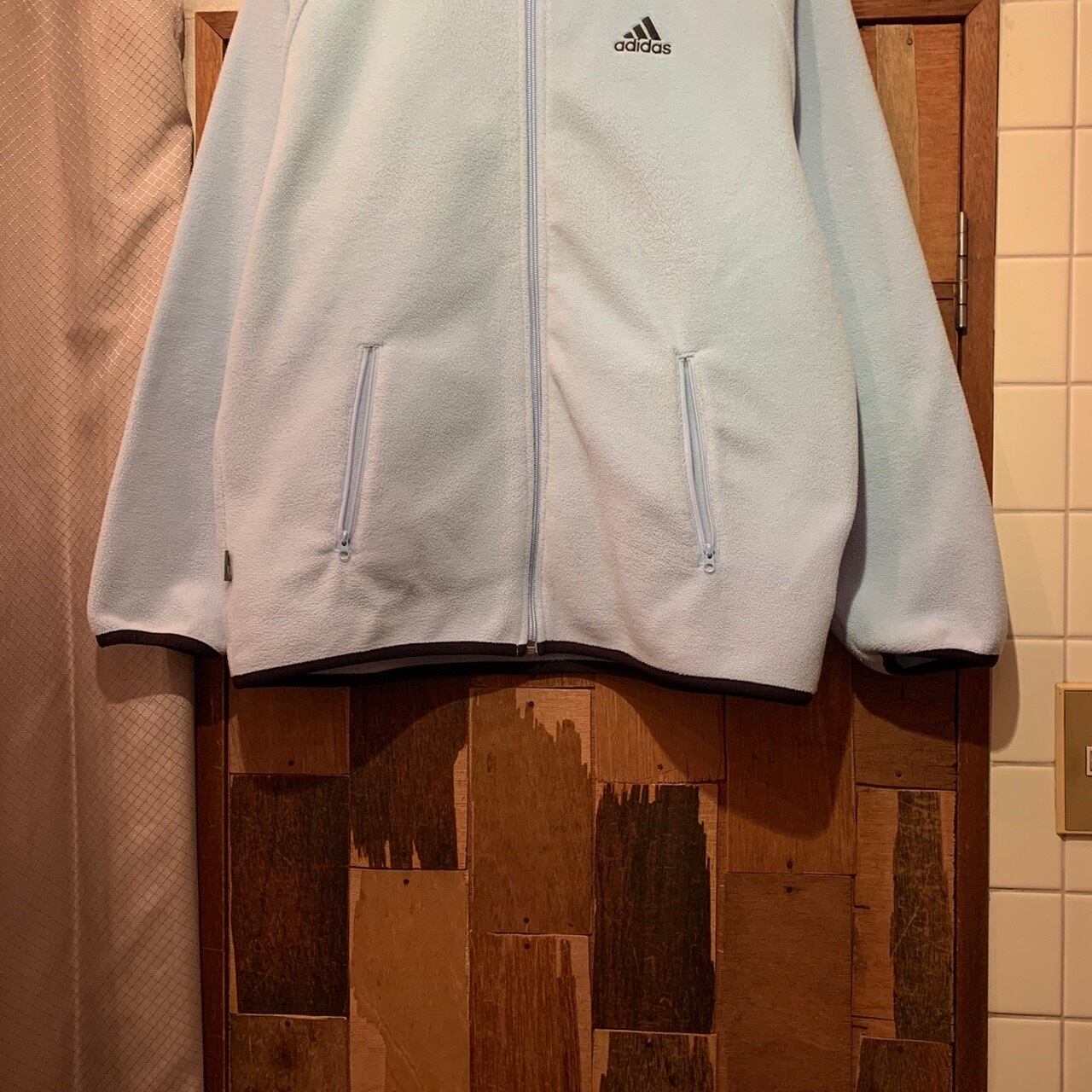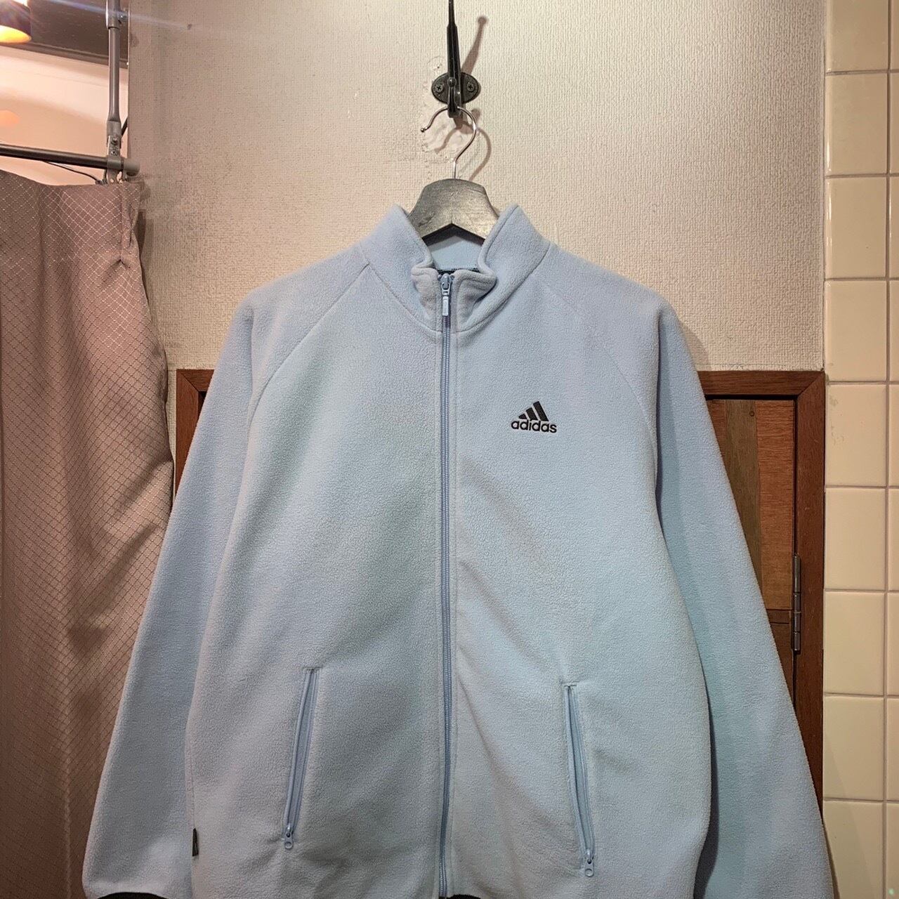 “adidas” 2005! light blue polyester logo design fleece JKT