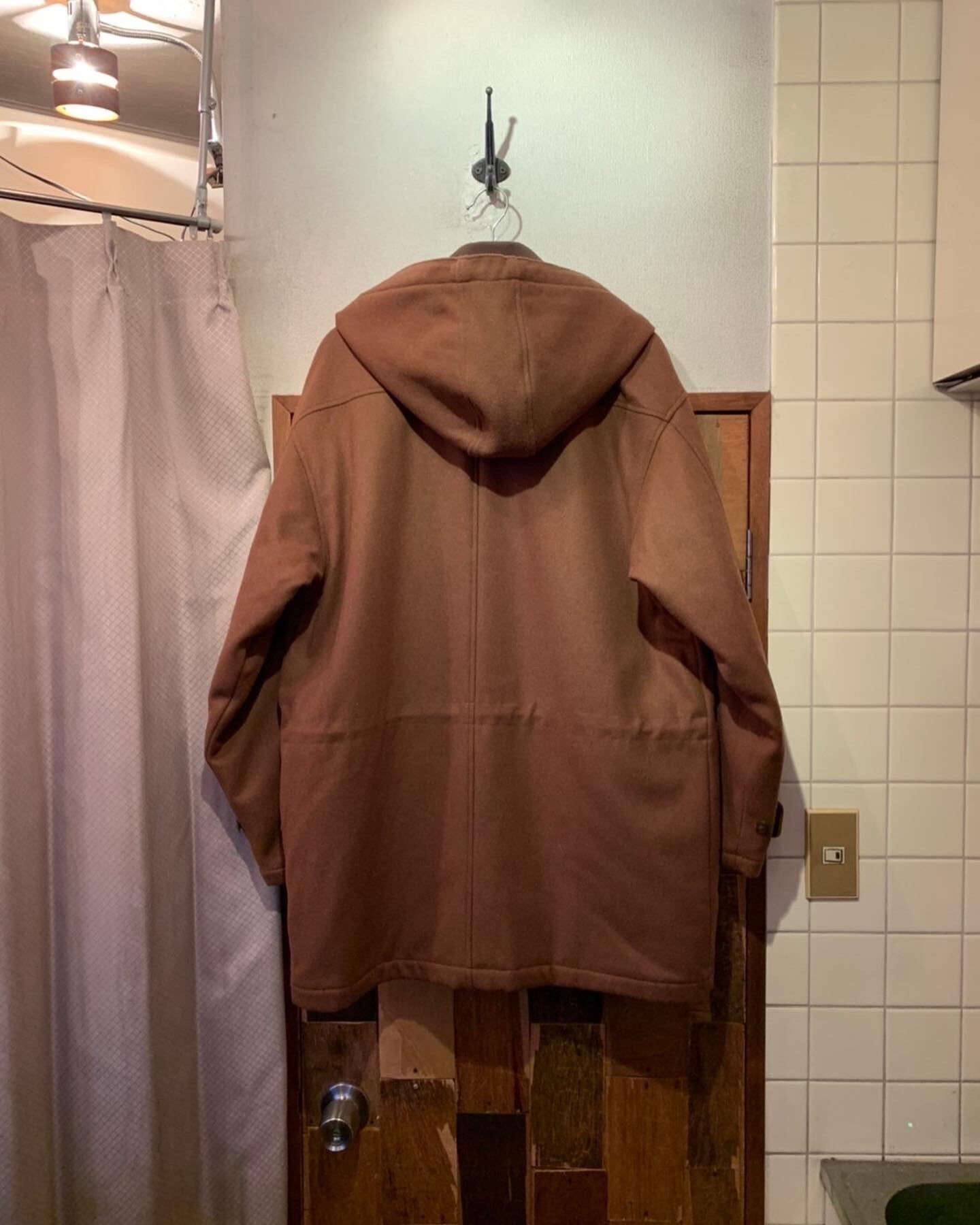 “PRACT STUDIO”「inner-quilting」dark brown wool/rayon design half-coat with hood