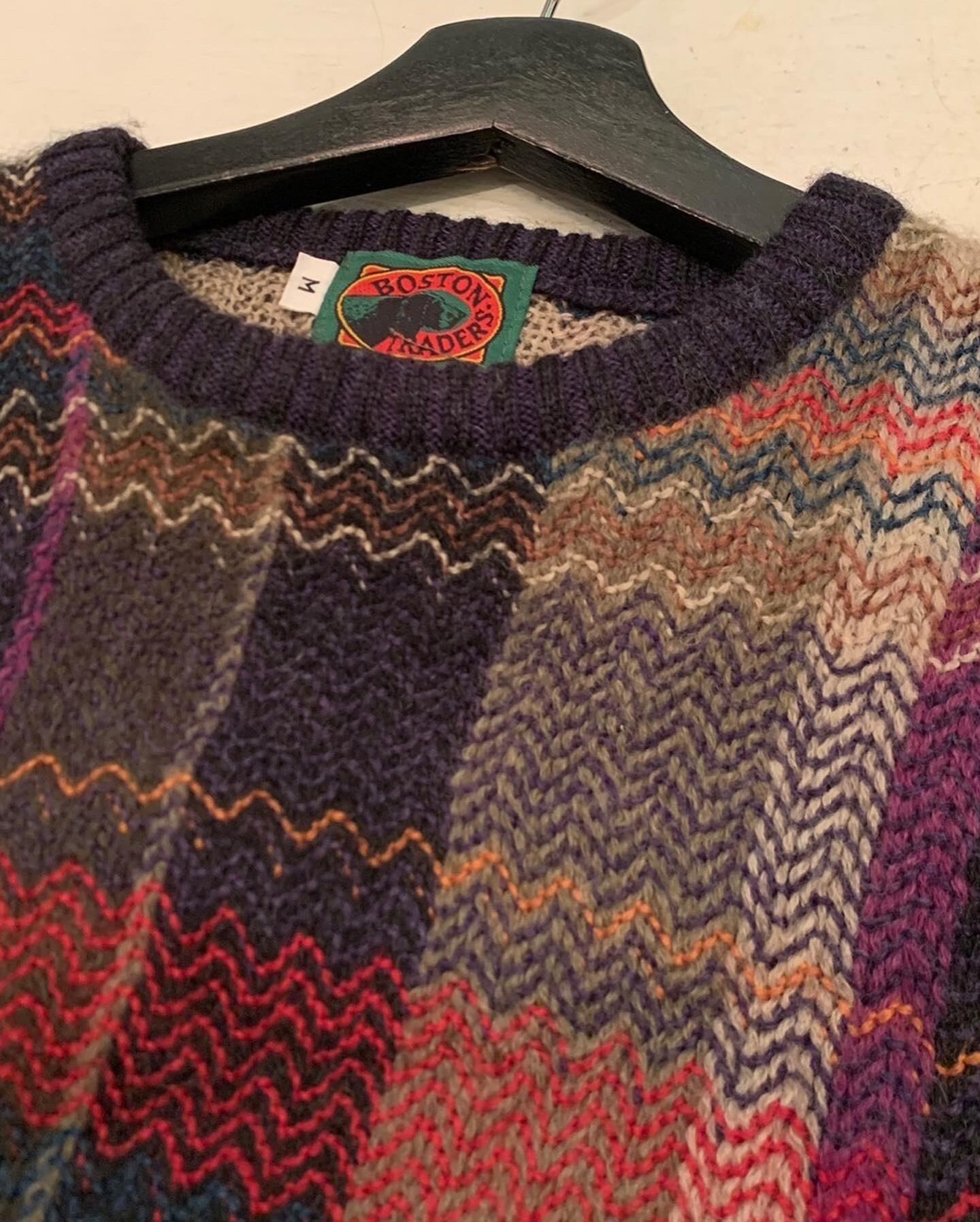 “BOSTON TRADERS” multi color wool crazy pattern knit sweater