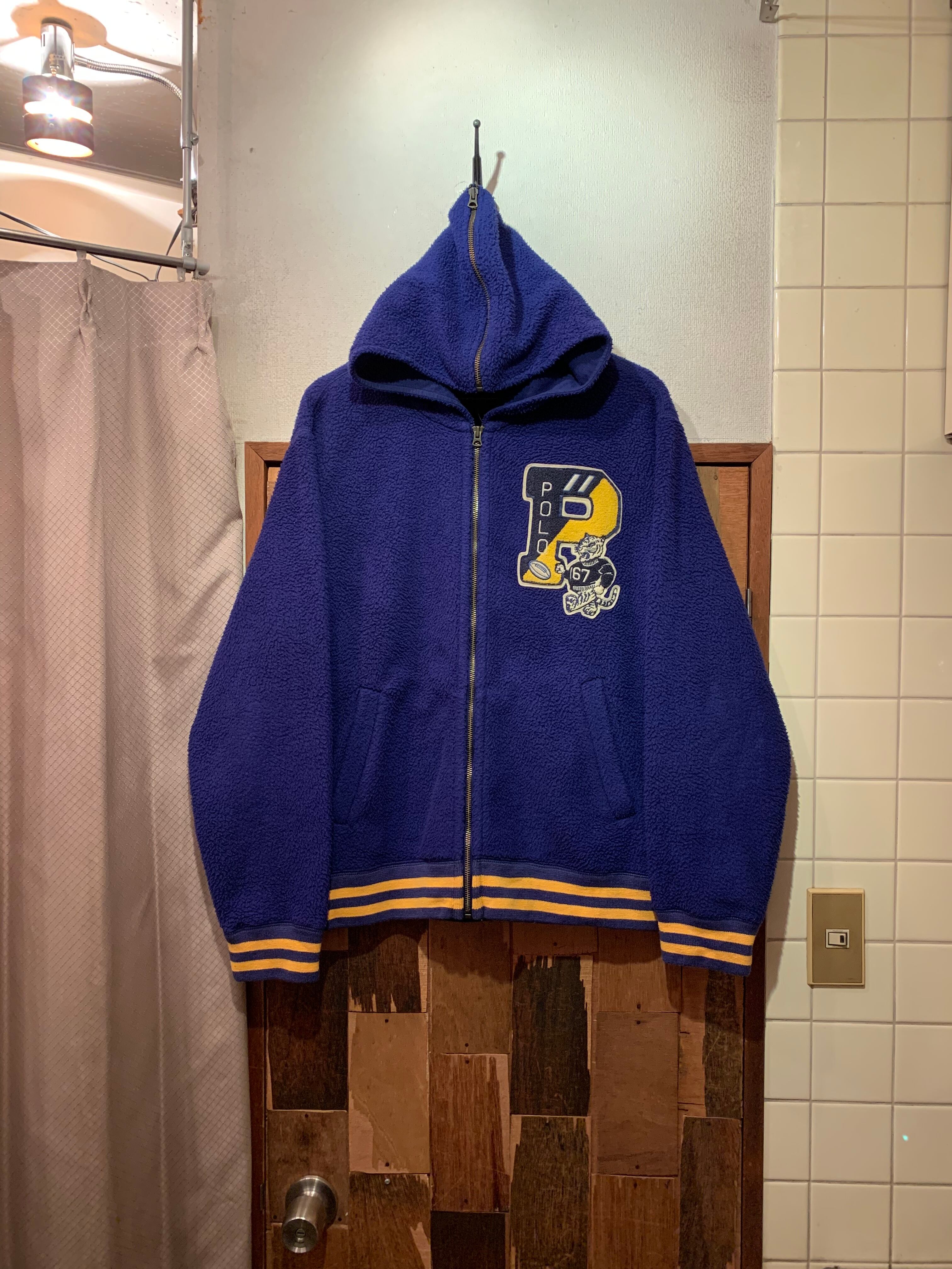 “POLO RALPH LAUREN” blue×yellow poly/cotton/wool sailor-collar fleece stadium jumper