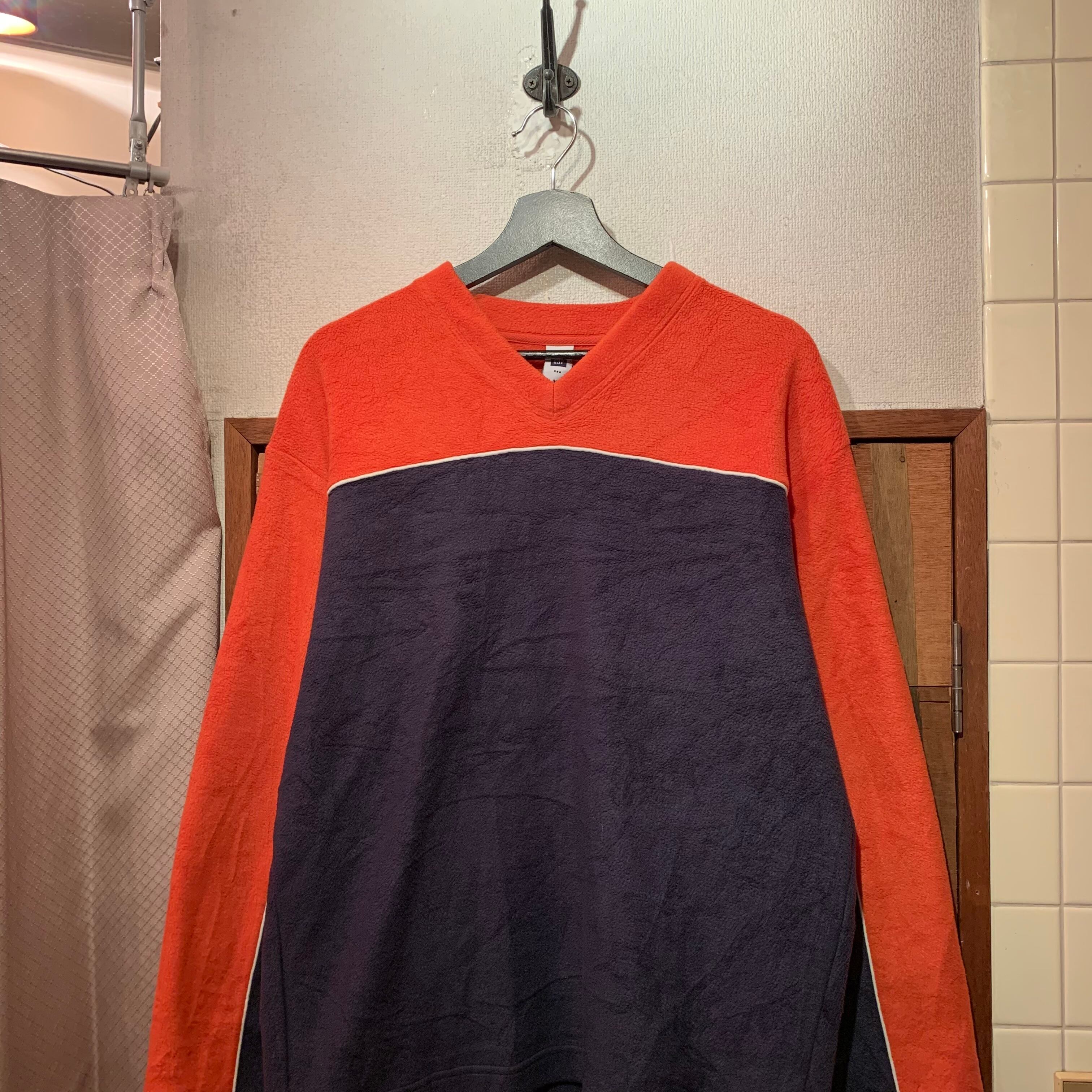“GAP” 04’s navy×orange polyester v-neck fleece