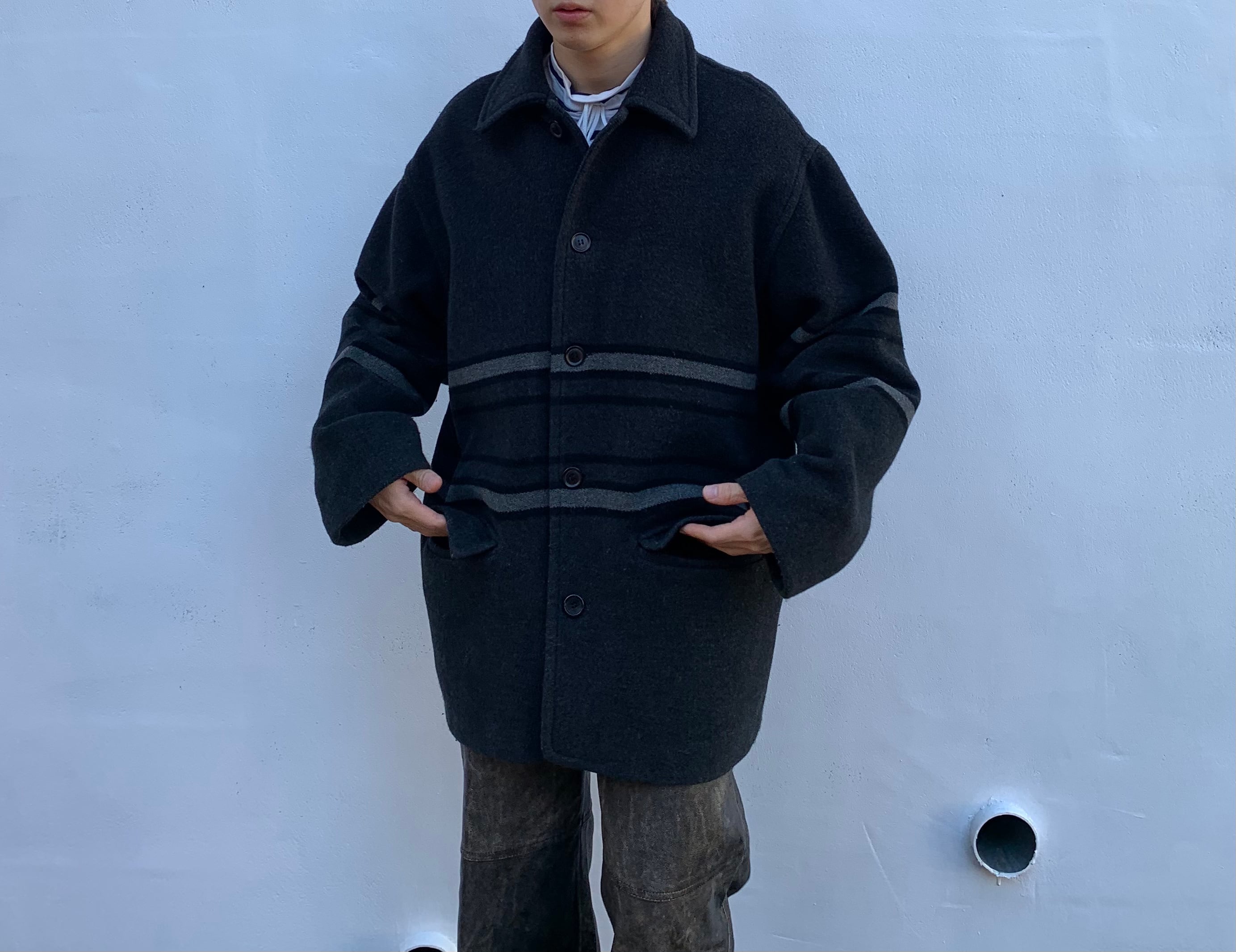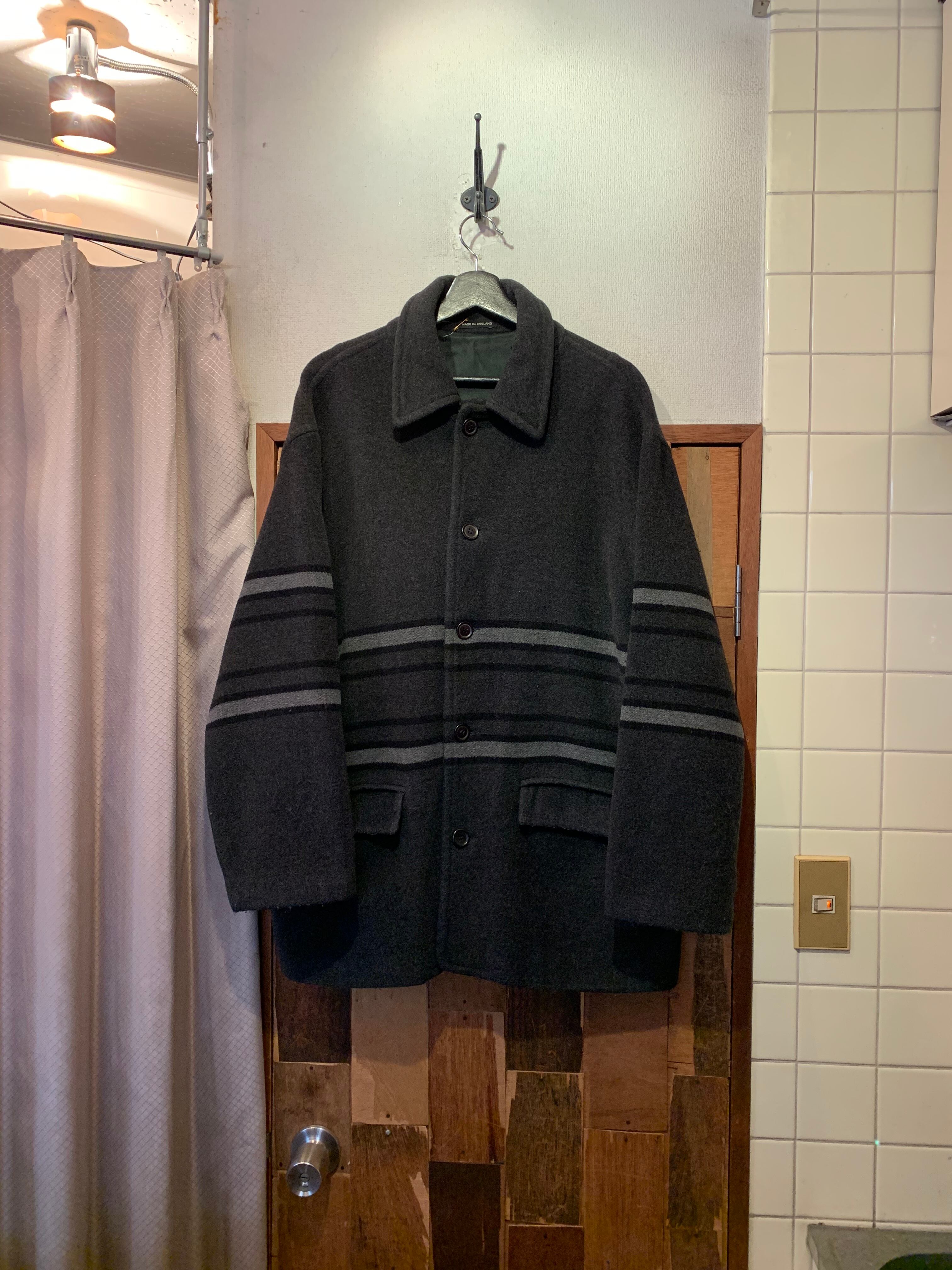 “NIGEL HALL” charcoal gray wool/cashmere/polyamide line design half-coat made in ENGLAND