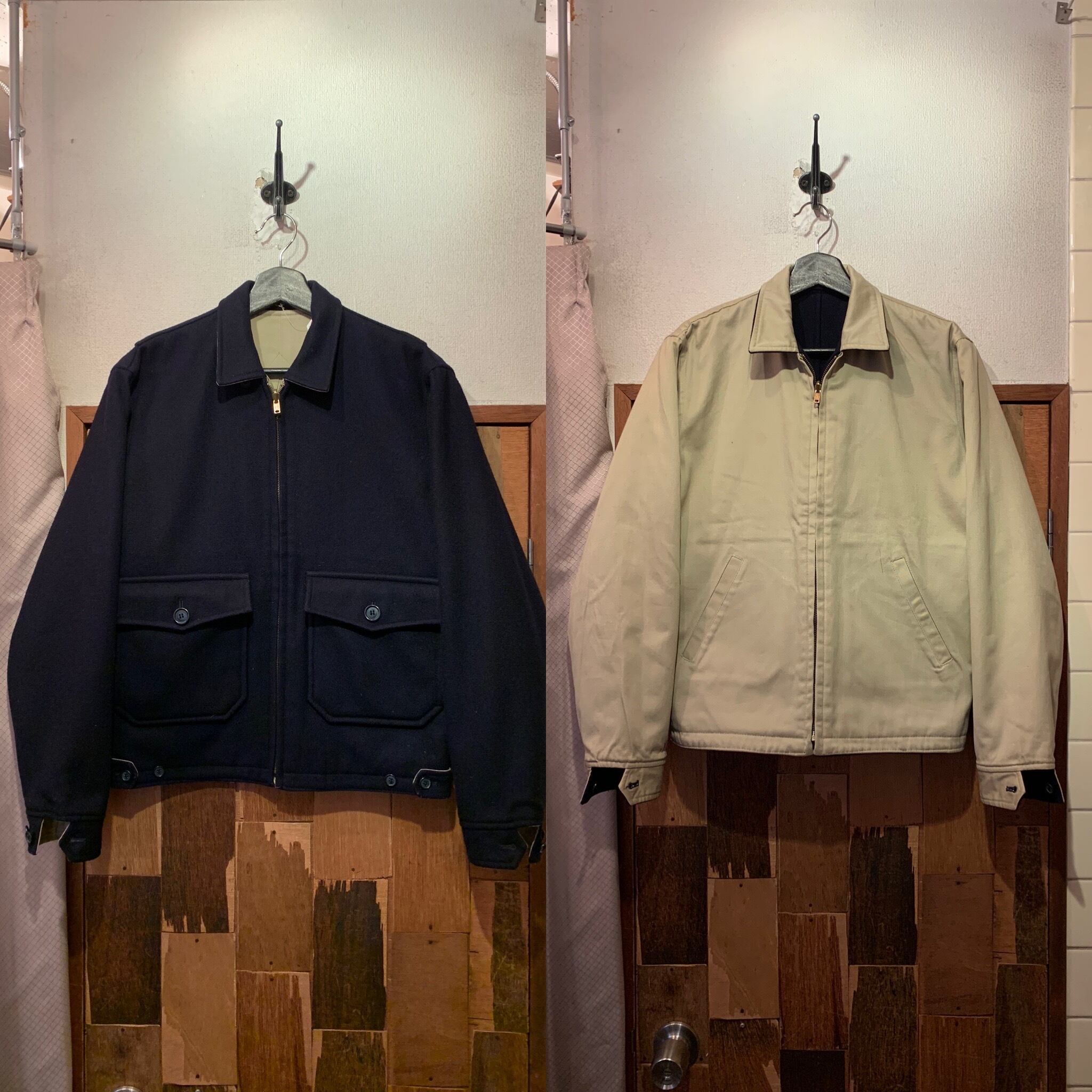 “University shop” navy×beige wool/nylon×cotton Reversible jacket