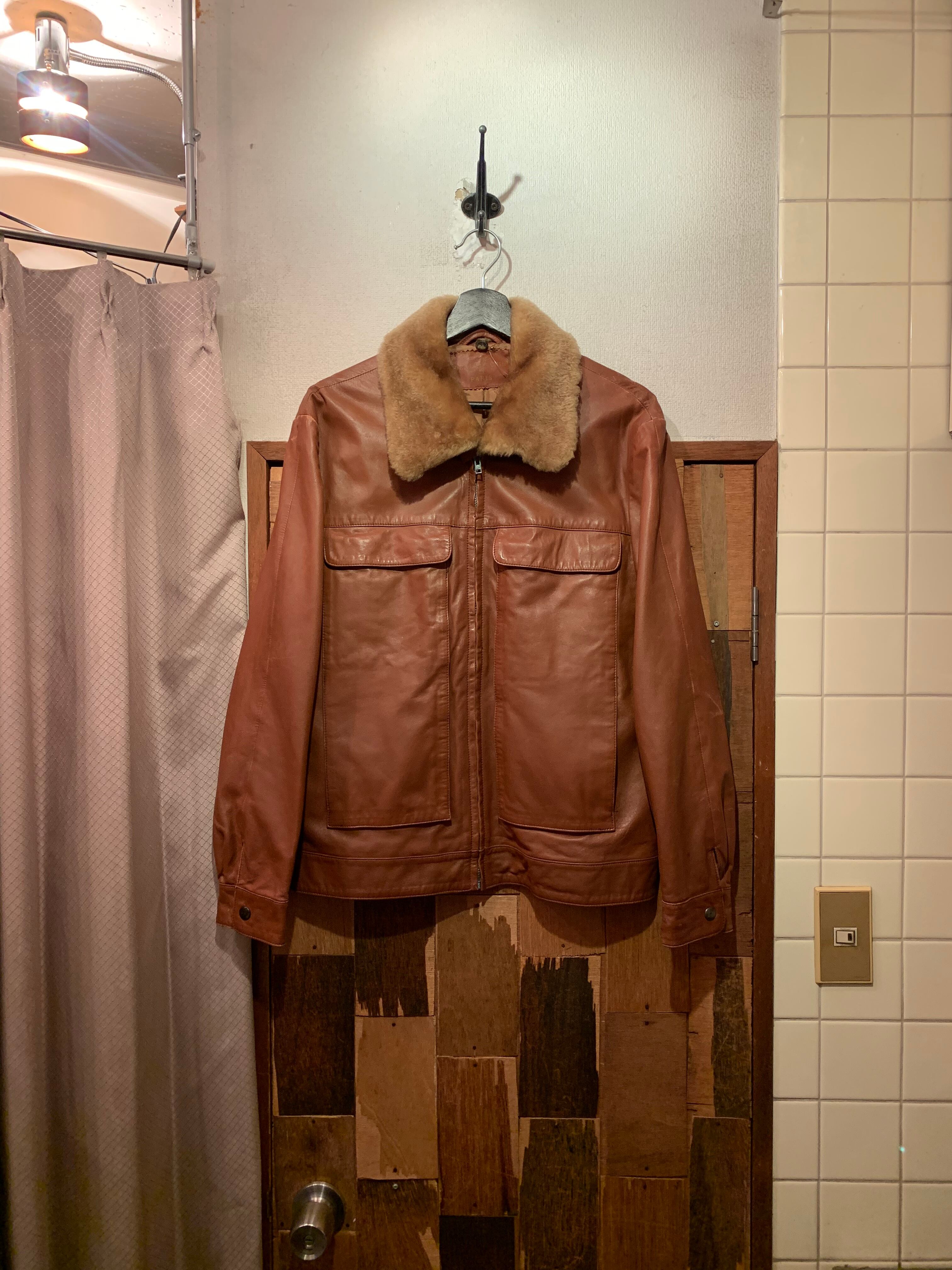“IDEAL CUIR” brown sheep leather zip-up 2way-collar jacket made in FRANCE