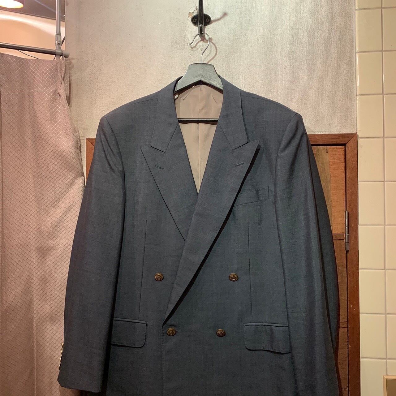 “Burberrys' ” 90's turquoise wool/mohair double breasted tailored JKT×2tuck slacks set-up