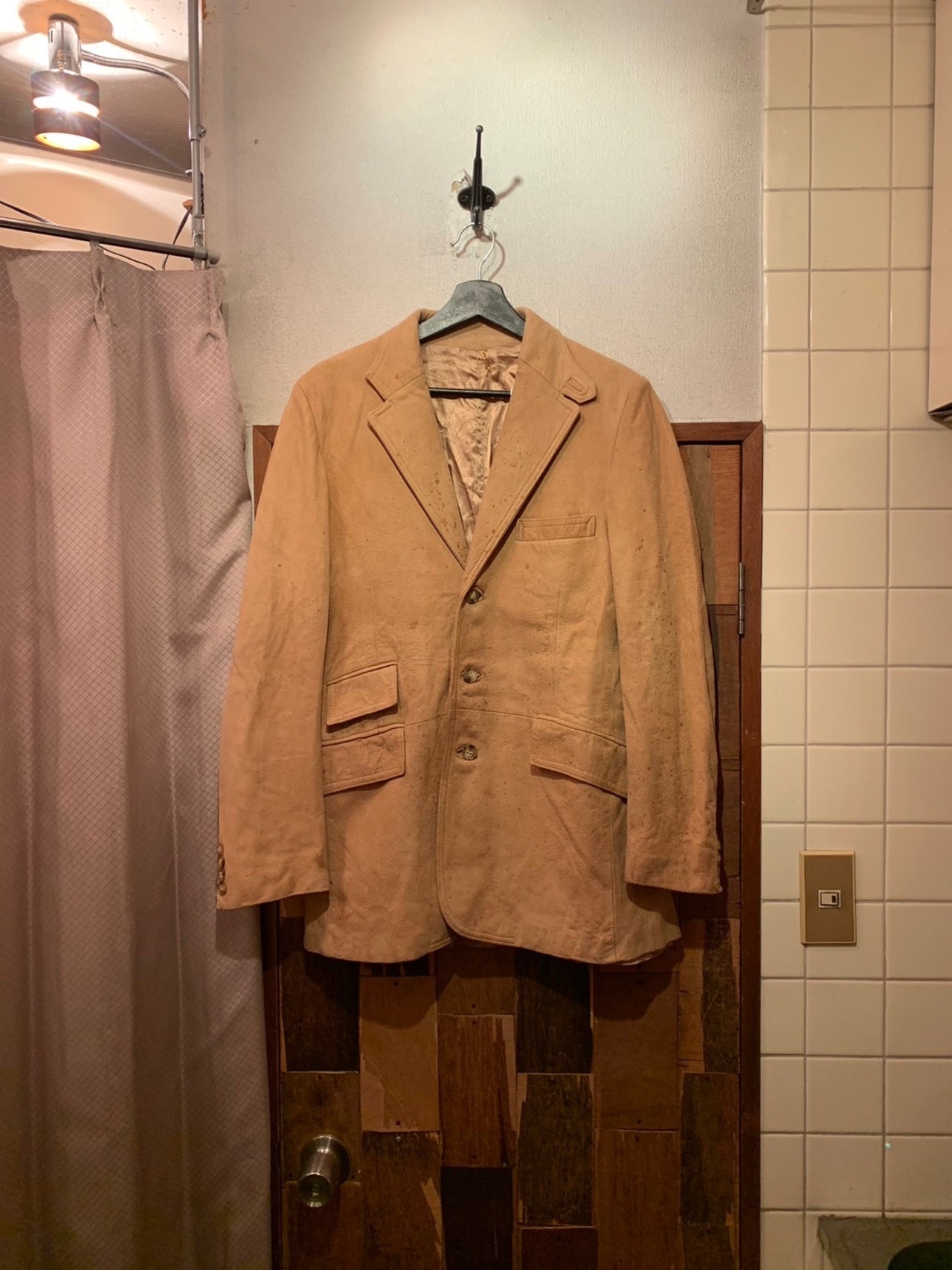 “brand unknown” good fade! light beige suede leather 3B jacket